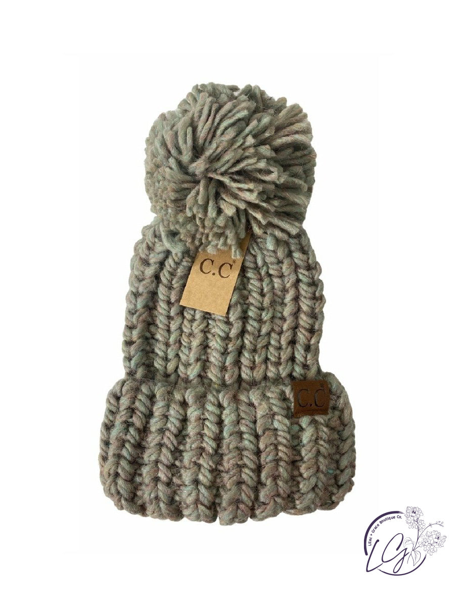 Check out this brand new cuffed beanie with a yarn pom!  Perfectly chunky knit; it will go with all of your new fall sweaters!