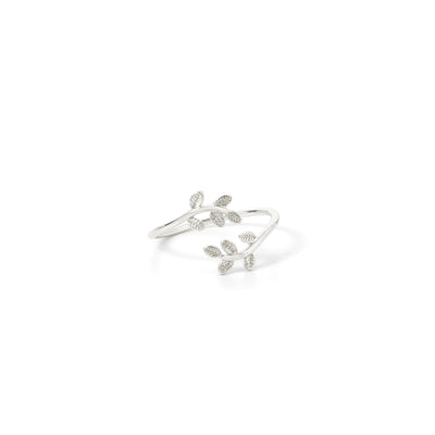 Silver Bypass Leaves Cubic Zirconia Brass Size 7 Ring