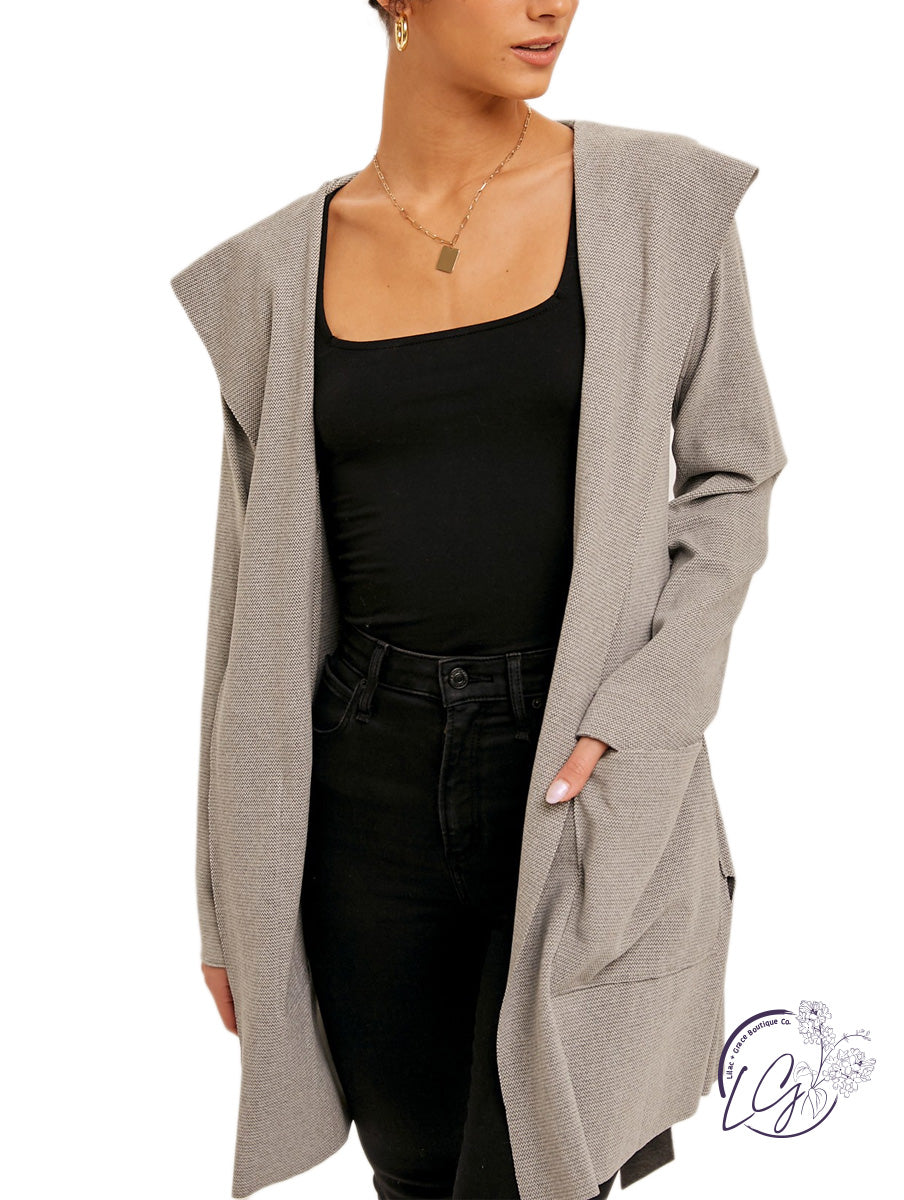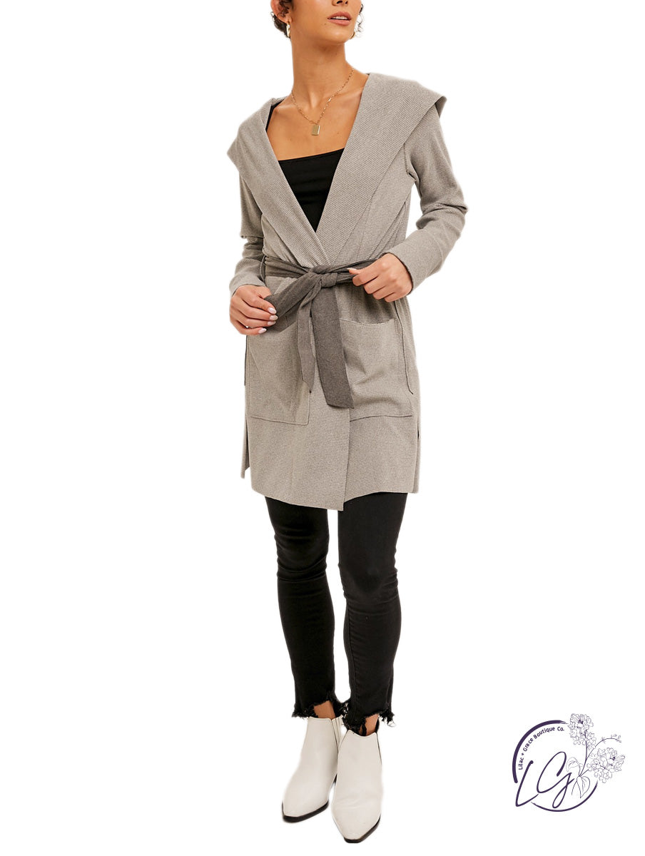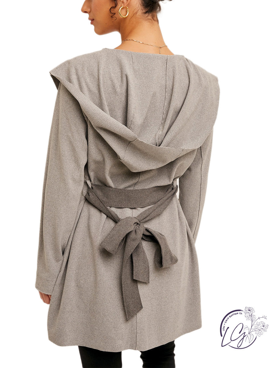 Two-Tone Fleece Belted Hooded Lightweight Coat
