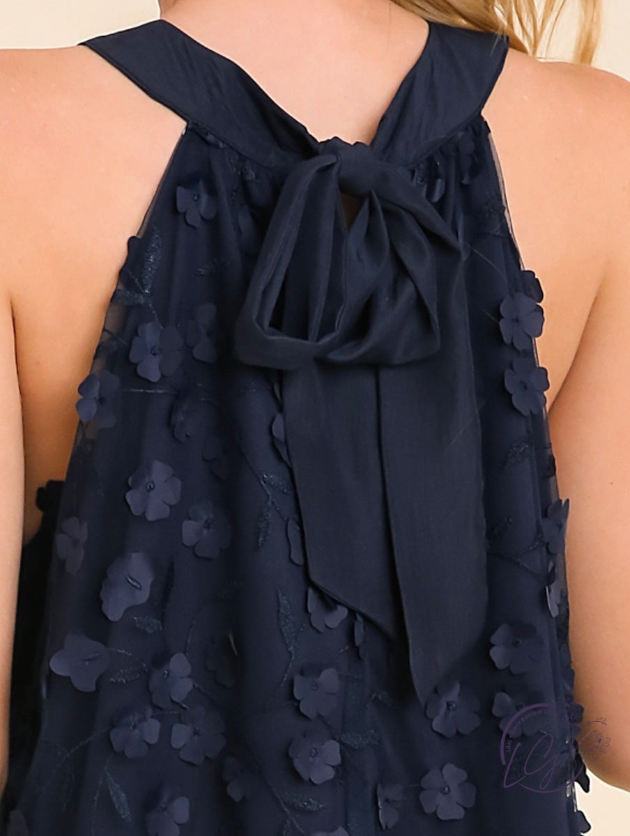 The silhouette of the dress is designed to flatter, with a fit that accentuates the waist and flows elegantly to the hem. The enchanting bouquet extends to the tie detail, providing an additional touch of charm and allowing you to adjust the fit to your liking.