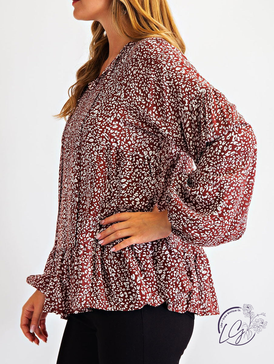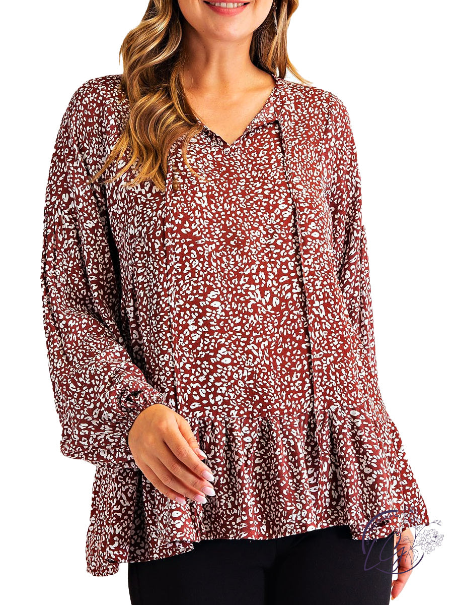 LEOPARD PRINTED RUFFLE BOTTOM TUNIC