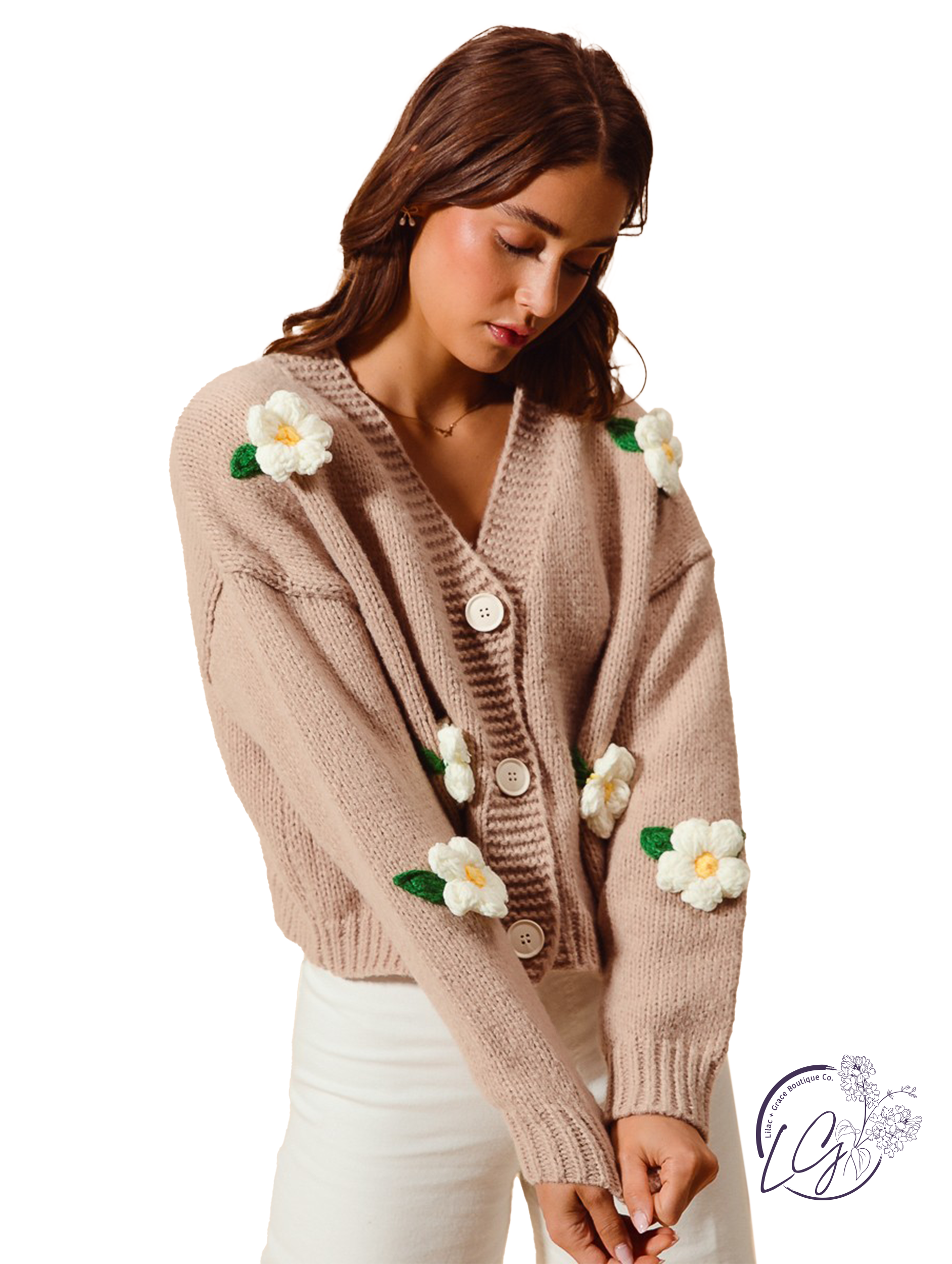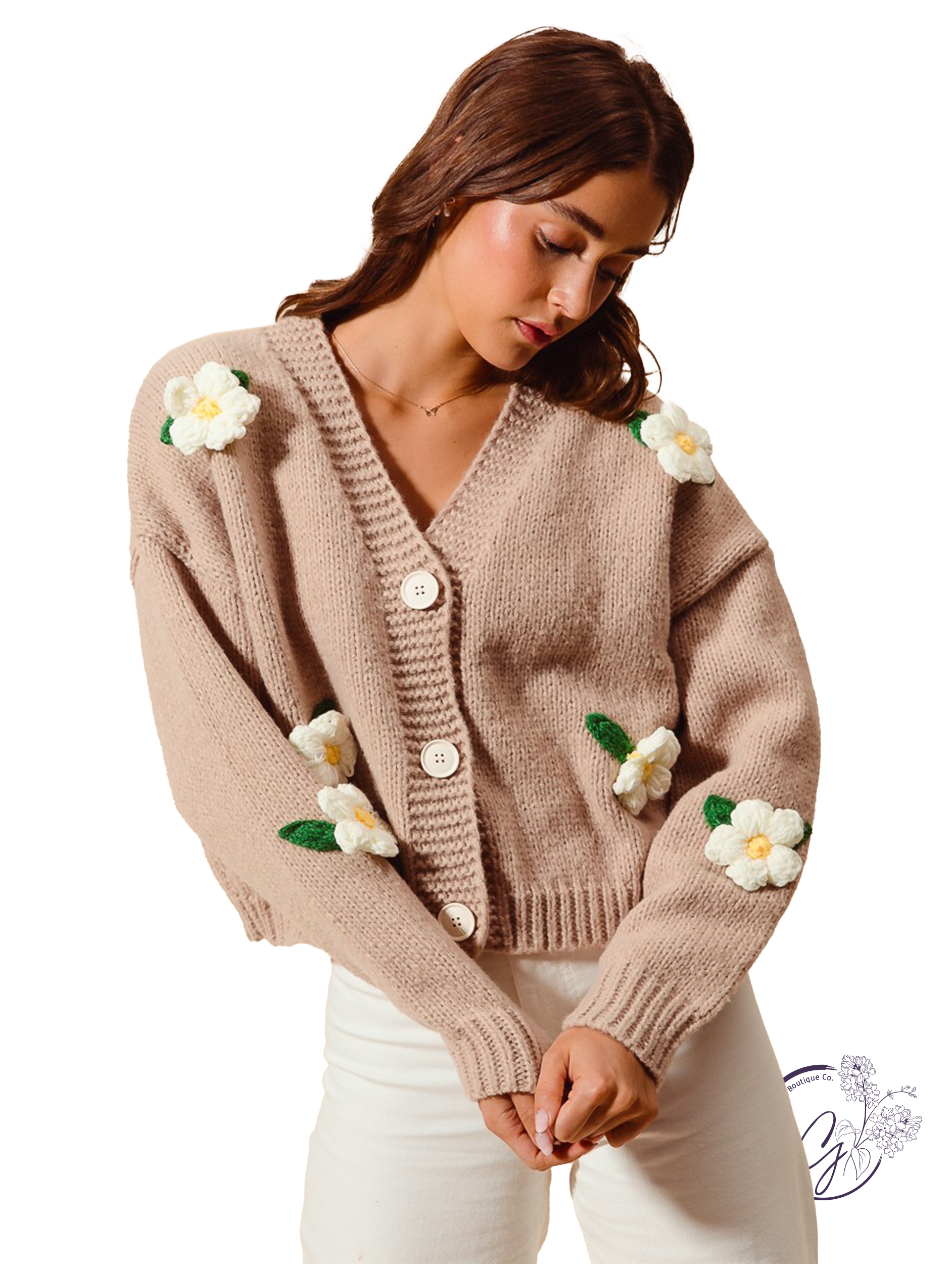 Dare to stand out with our As Flower Ribbed Cardigan! Adorned with 3D flower appliques, this cardigan adds a touch of boldness to any outfit. The ribbed hem adds a touch of texture and style, perfect for those who aren't afraid to take risks in their fashion choices.