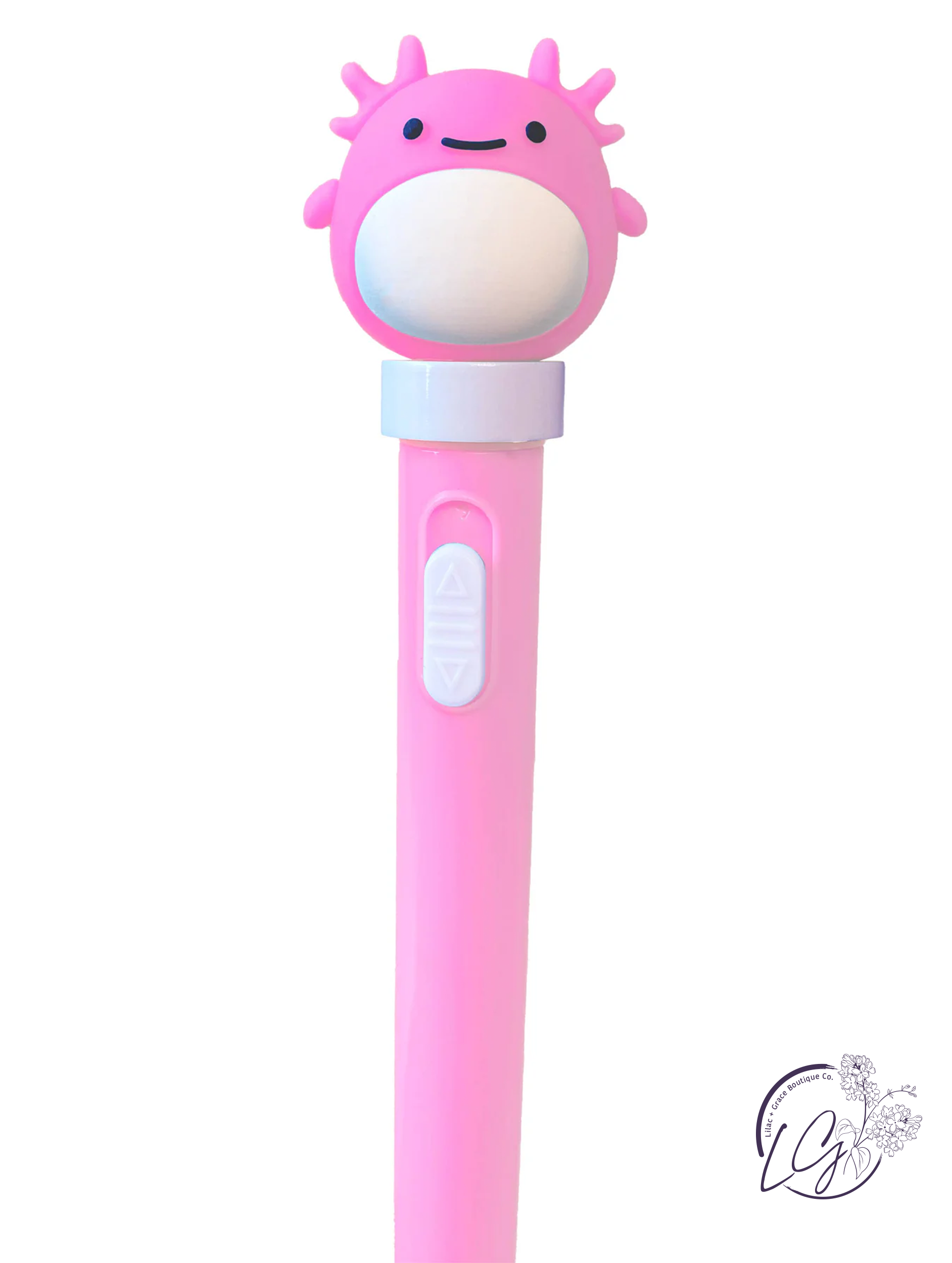 Spinning with joy, these assorted Axolotl light up pens are write on trend. Comes in three different colors, and all are equally as cute as can be.