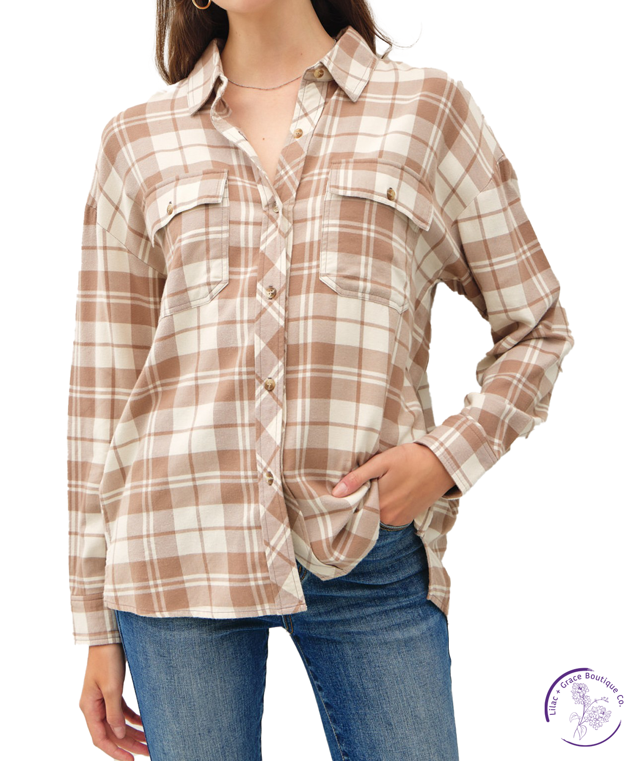 Unleash your inner farmhouse chic with our Barnyard Belle Flannel! Featuring a classic plaid print and button-down style, this ultra-soft shirt is perfect for staying cozy in the colder months or transitioning into fall. With front pockets and a relaxed, oversized fit, it's both practical and stylish. Don't miss out on this must-have addition to your wardrobe!