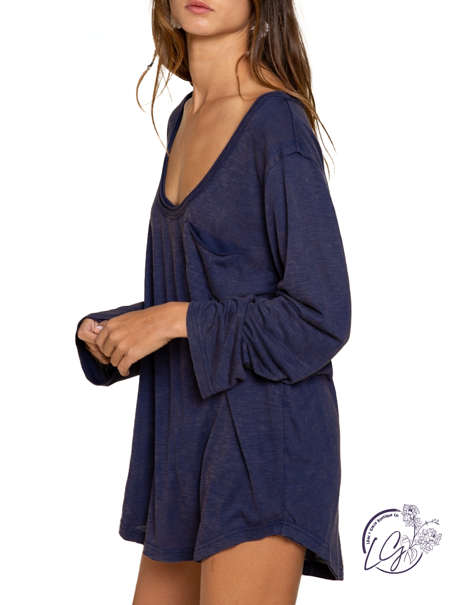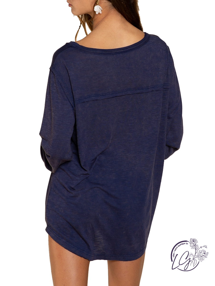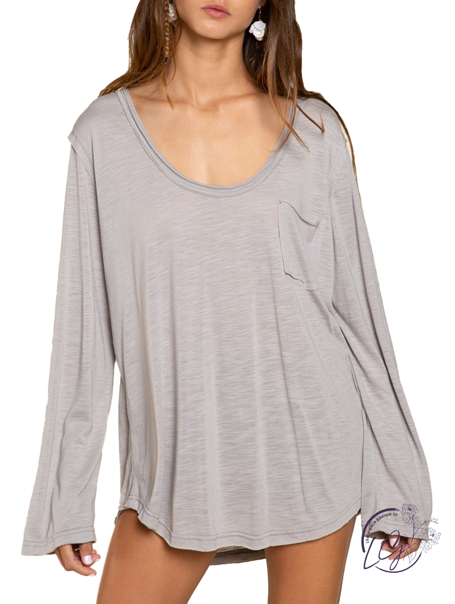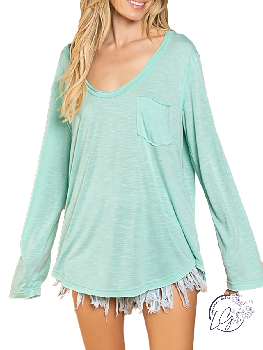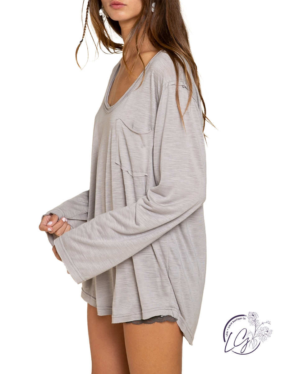 Designed with cut edged scoop neck , long sleeve , relaxed fit with front pocket detailed slub top.