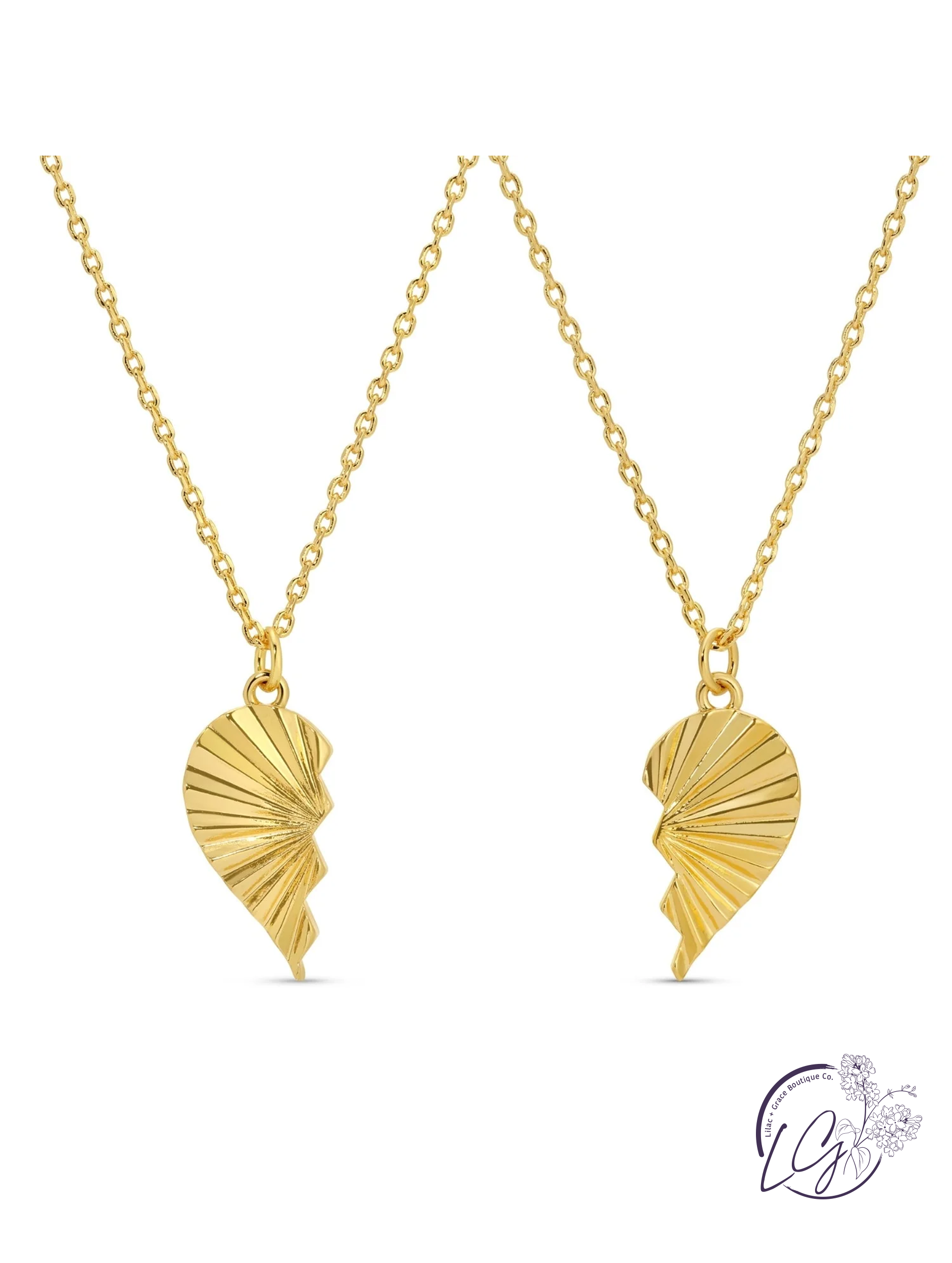 Be Connected - Pair of Heart Halves Friendship Necklaces