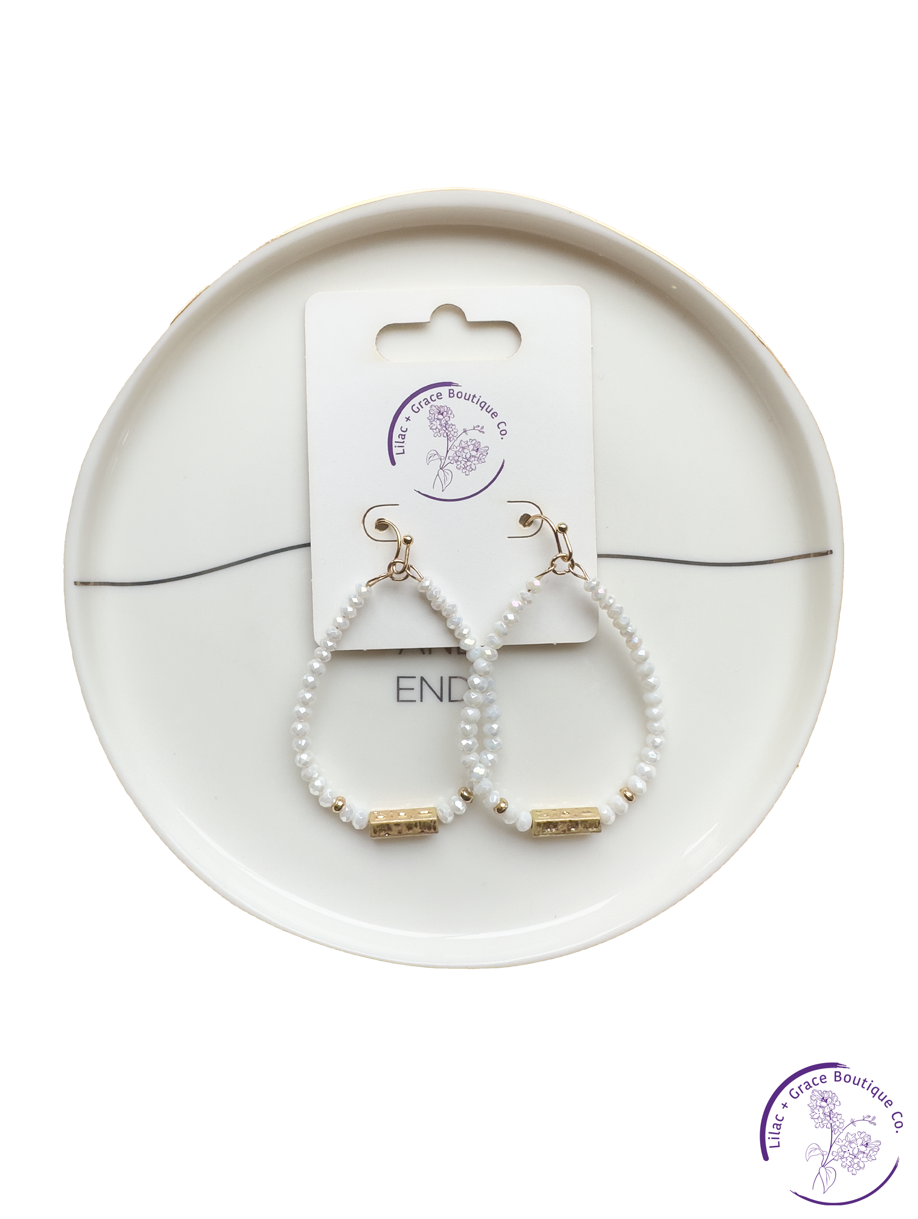Beaded Teardrop Earrings w/ Gold Accent