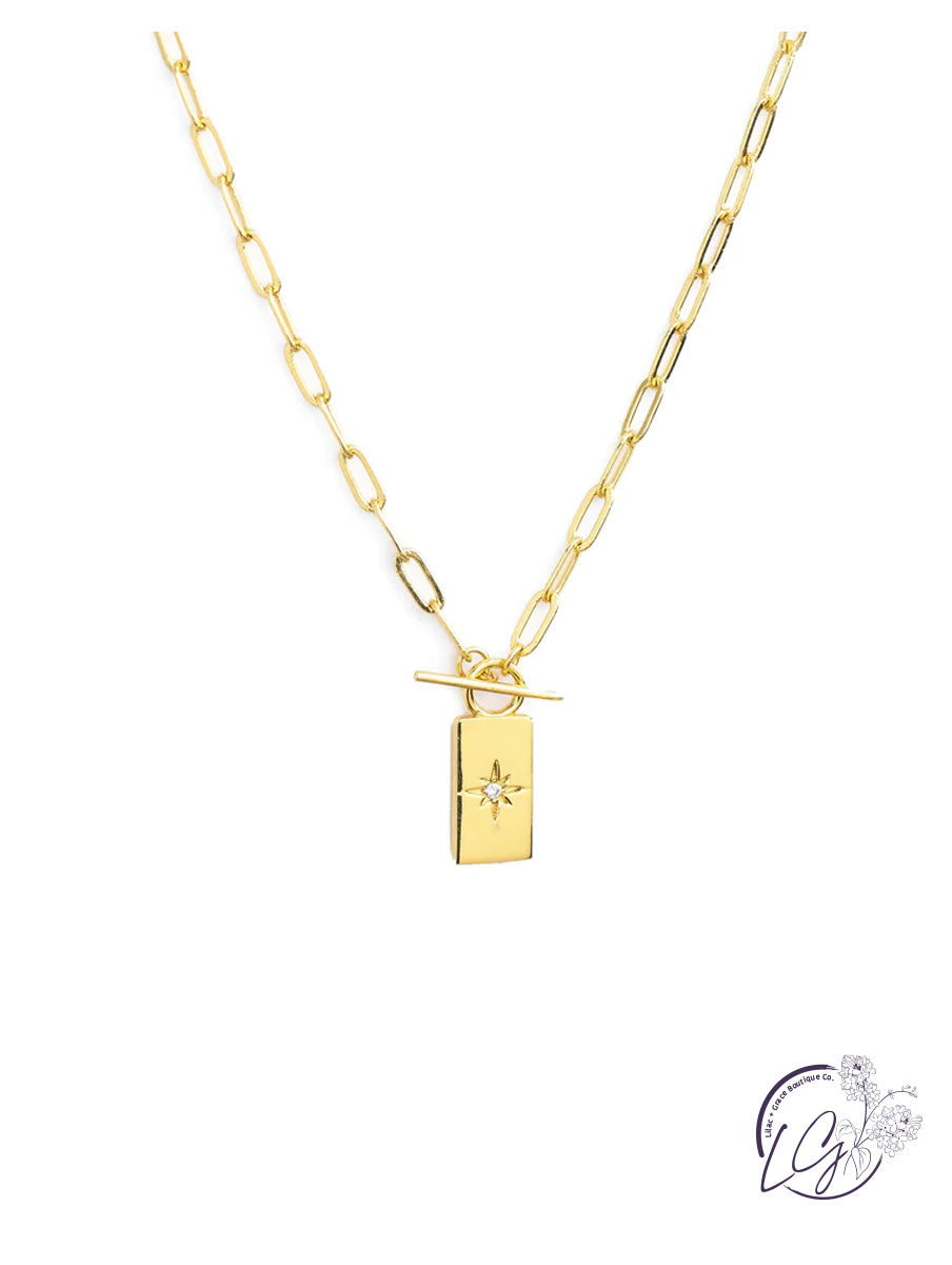 Studio Collection - Rectangle with cubic zirconia accented starbust on delicate link chain with toggle closure