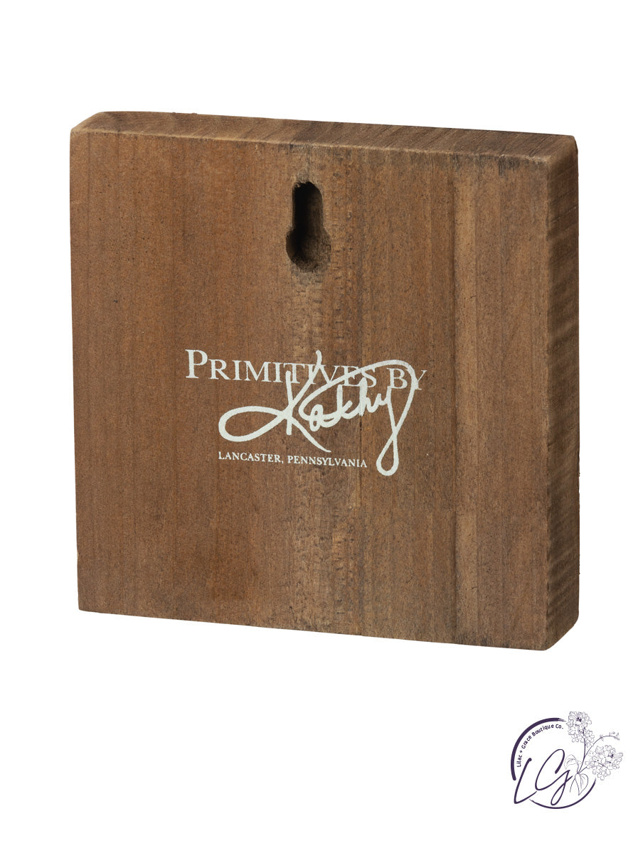 A wooden block sign featuring a "Home Sweet Home" sentiment with floral designs over a distressed cream background. Contains predilled keyhole back for easy hanging or can free-stand alone. Complements well with coordinating pieces in collection for a charming spring display.