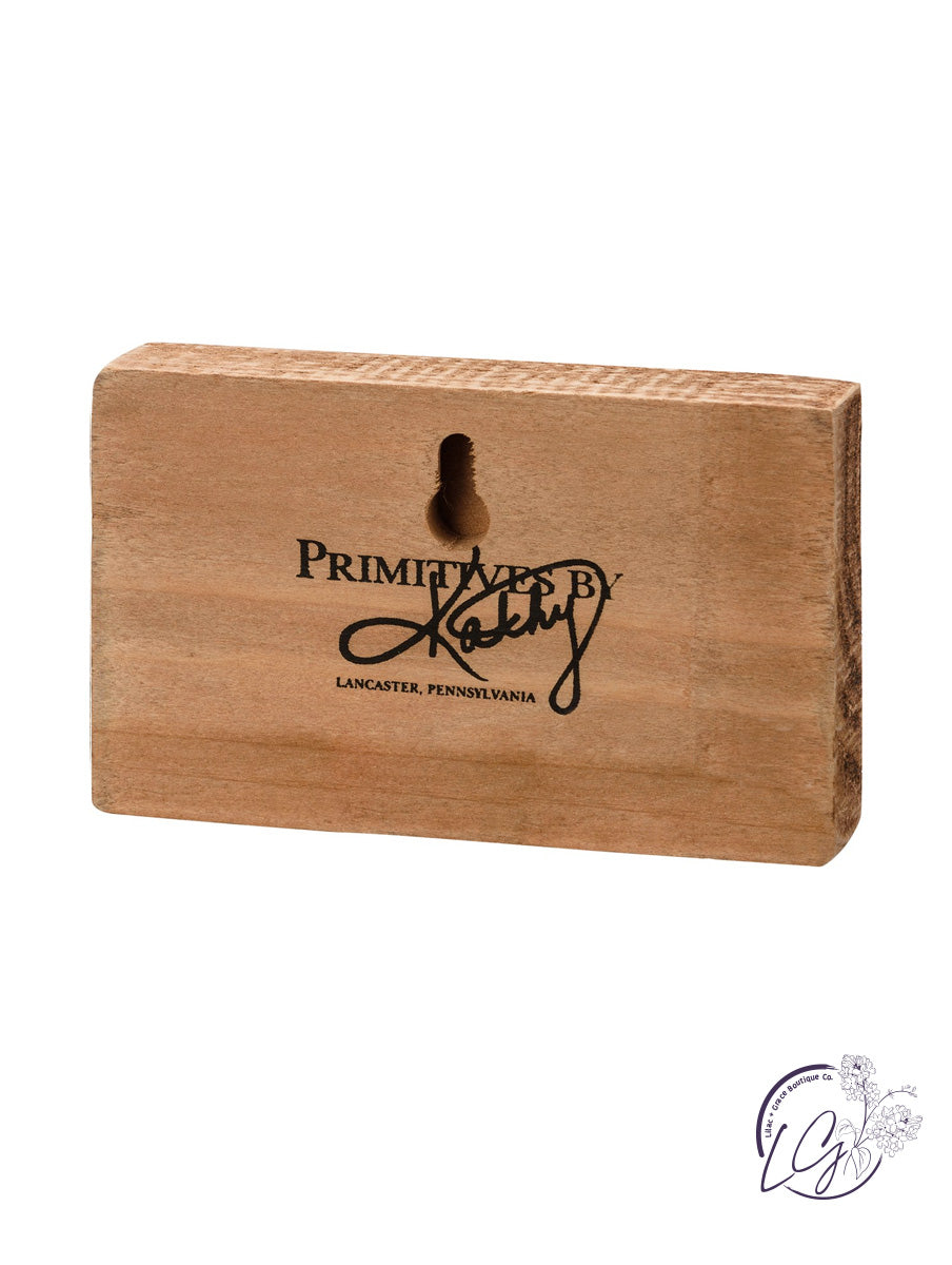 A wooden block sign featuring "In The Middle Of My Chaos There Was You" sentiment and natural wood sides for added interest. Our My Chaos sign is easy to hang via predrilled keyhole slot or can free-stand alone.
