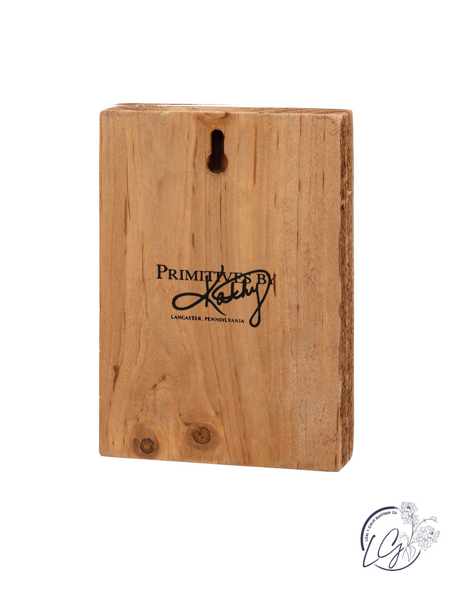 A wooden block sign featuring patriotic sentiment and stars design. Natural wood sides, slat accents, and distressed details make the design pop. Wooden wall art is easy to hang via predrilled keyhole slot or can free-stand alone.