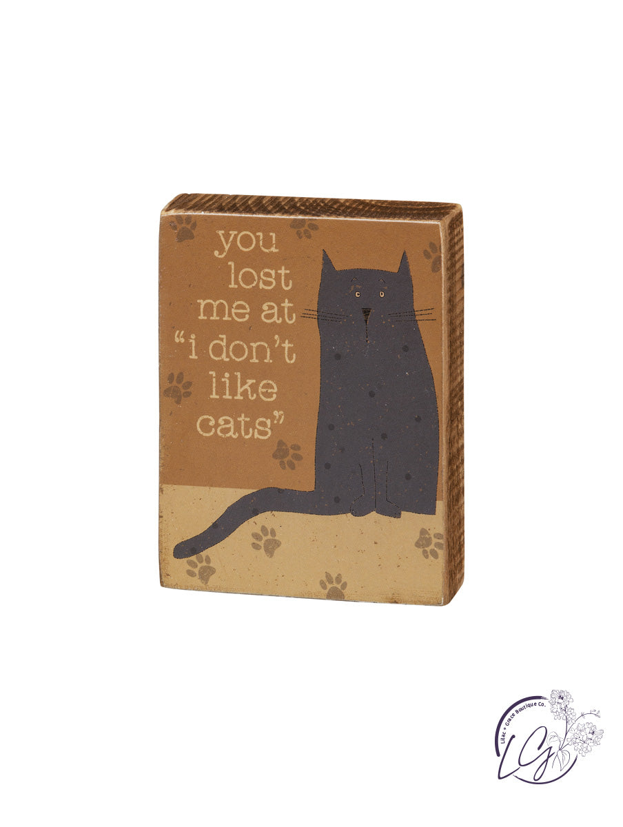 Block Sign - You Lost Me At "I Don't Like Cats"