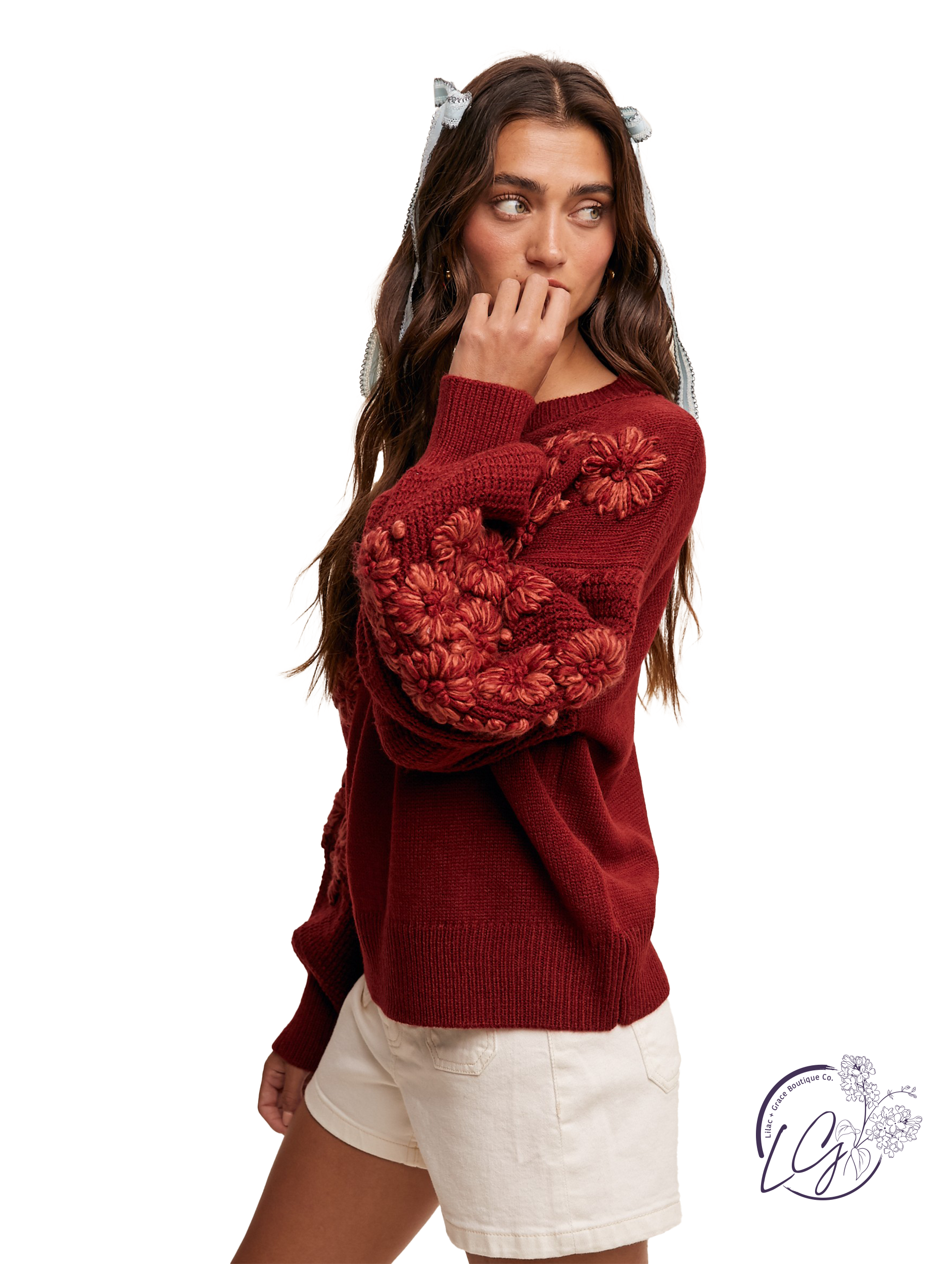 Experience cozy nostalgia with our Breeze Holds Memories Sweater. This gorgeous hand embroidered knit features waffle textured long sleeves and delicate floral details on the body and sleeves. The round neck and ribbed details on the cuffs and hem add extra comfort and style. Embrace the memories in this unique and charming sweater!