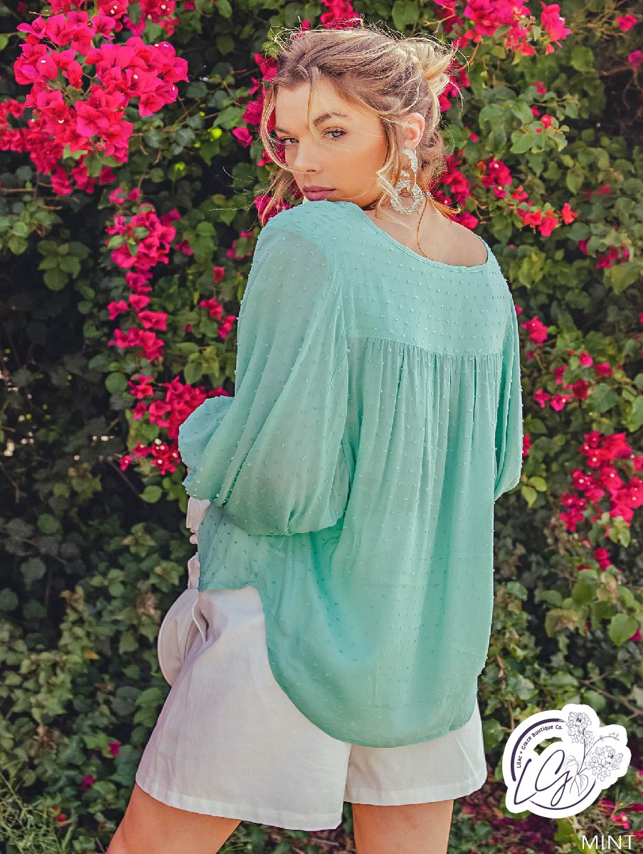 The "Breezy Texture Charm Blouse" is an elegant and enchanting garment that combines a breezy and relaxed style with alluring textured details. This blouse features a captivating combination of airy fabric and delicate texture, creating a look that exudes sophistication and charm.
