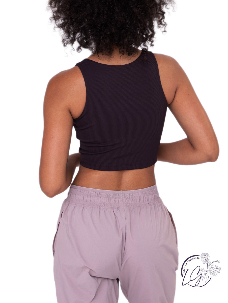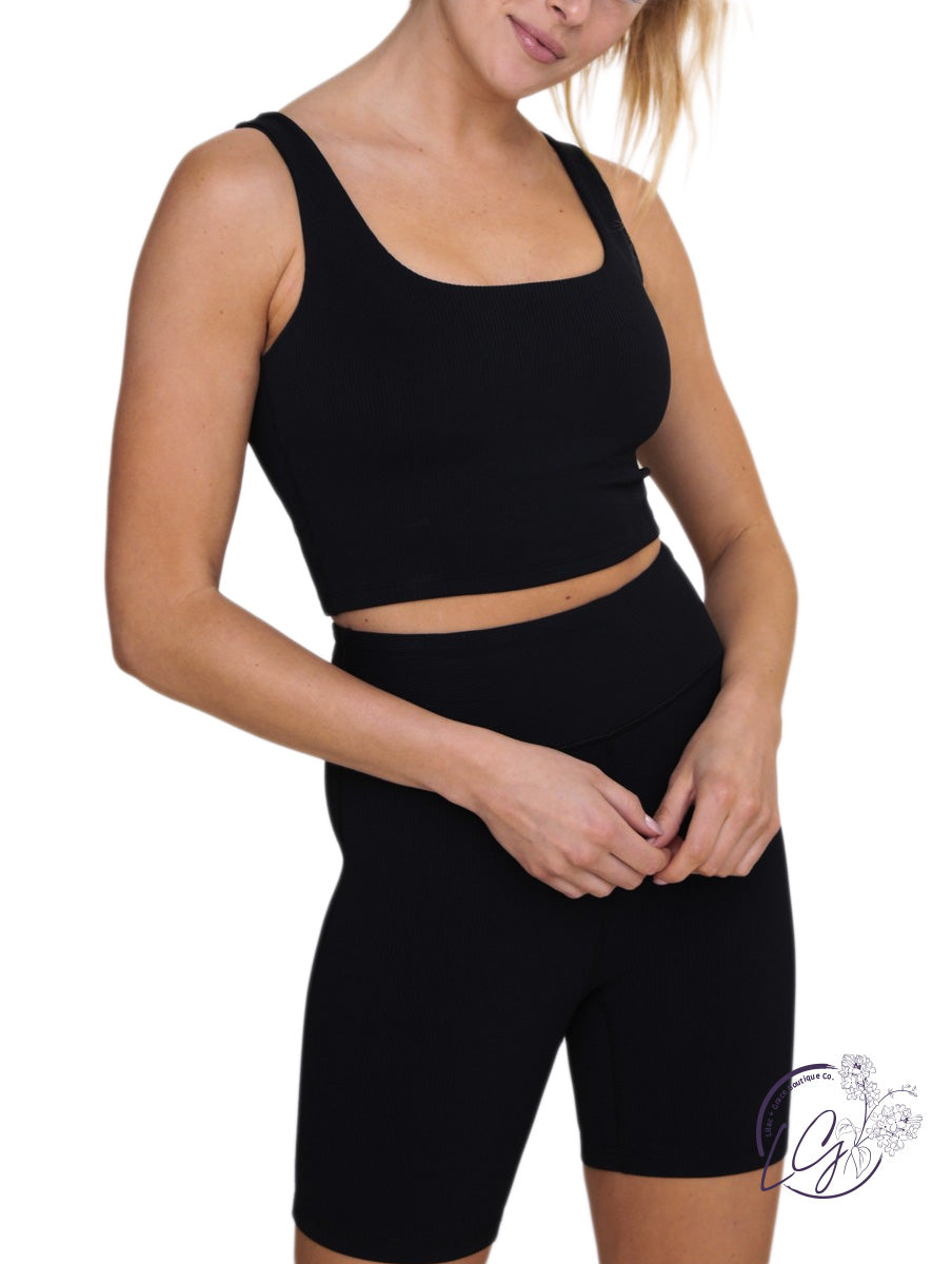 This ribbed top is guaranteed to be your new favorite piece. It has a square neck line and can be worn with active bottoms or dressed up with some pleather pants for a night out.
