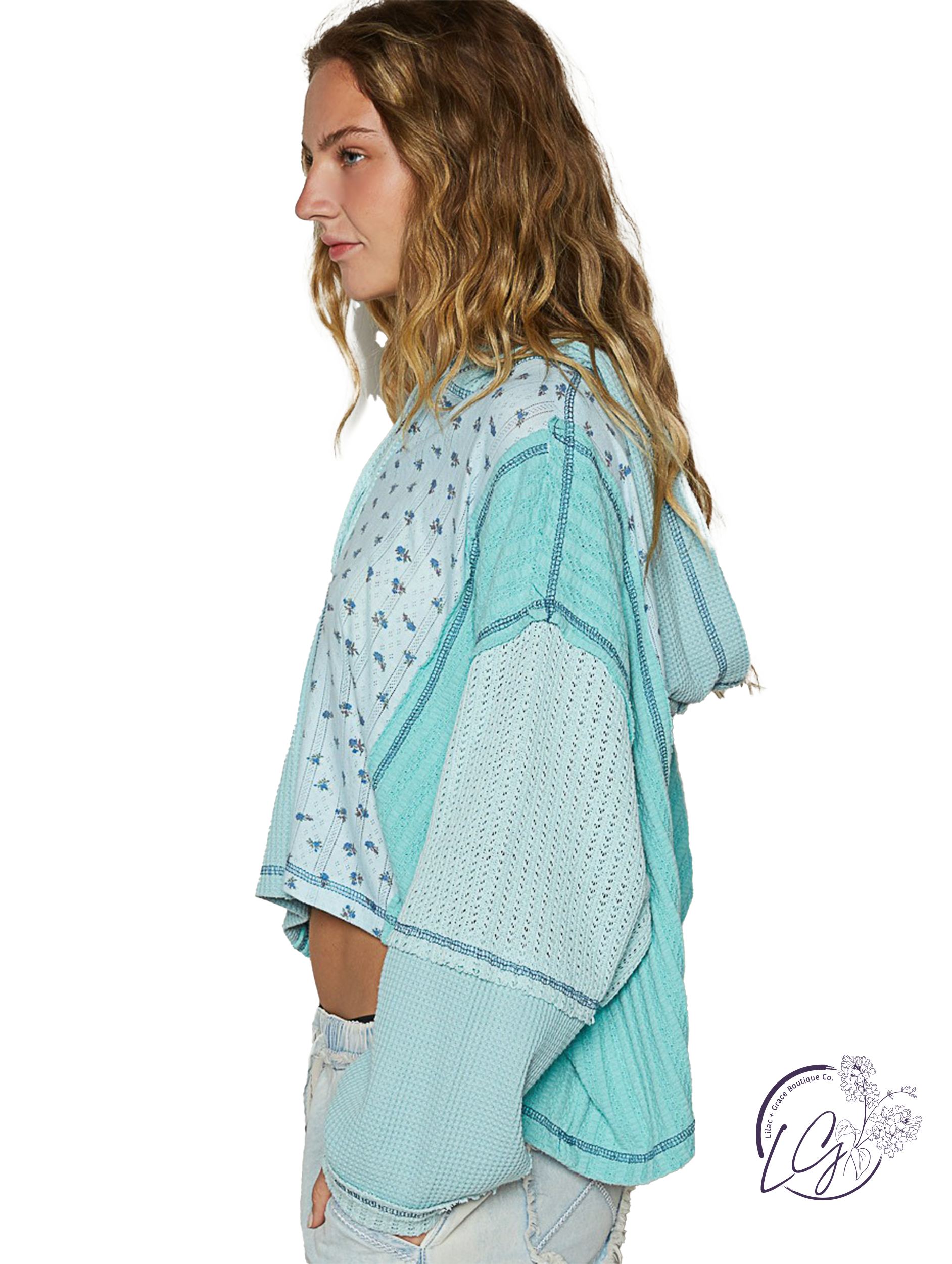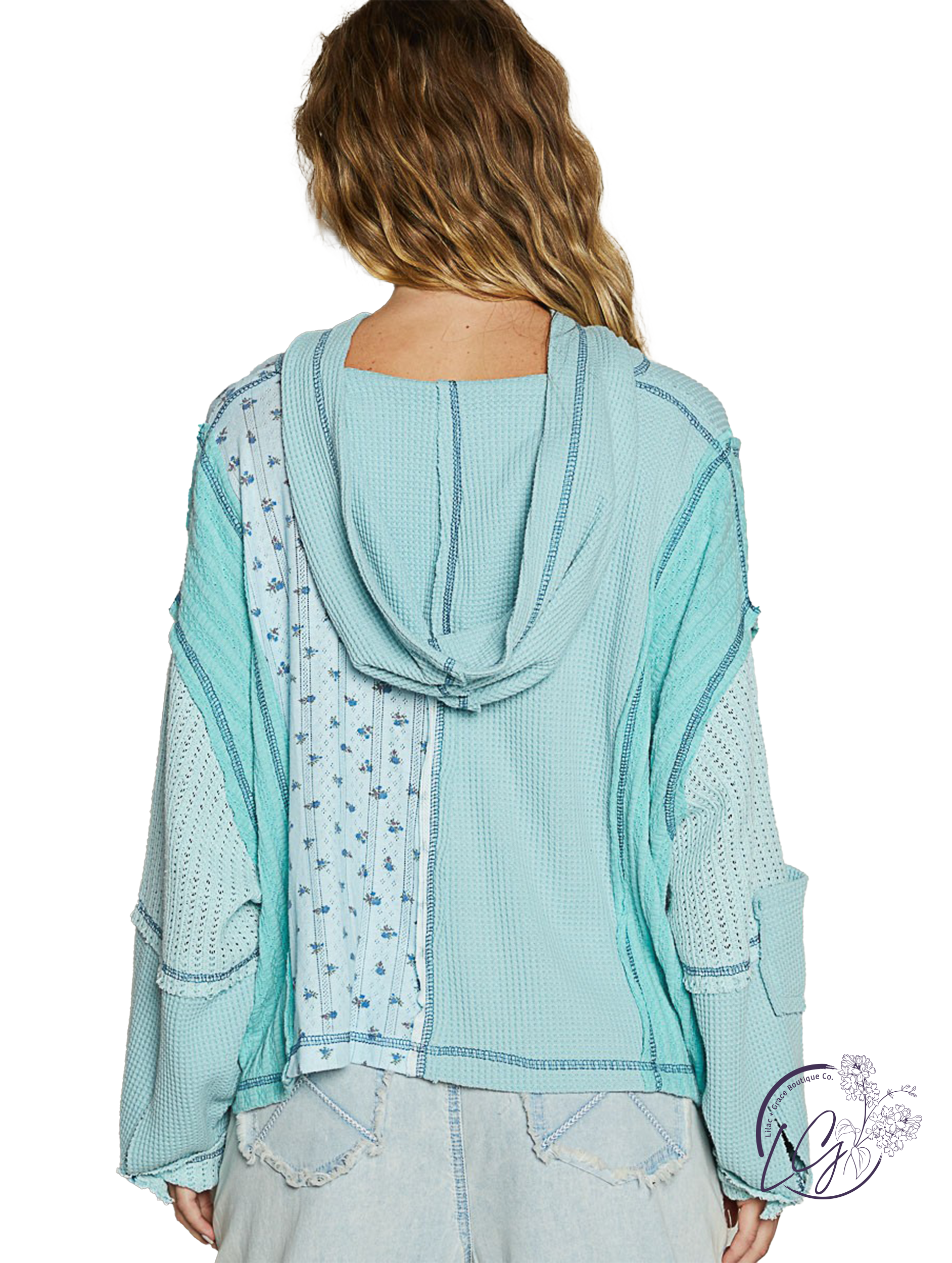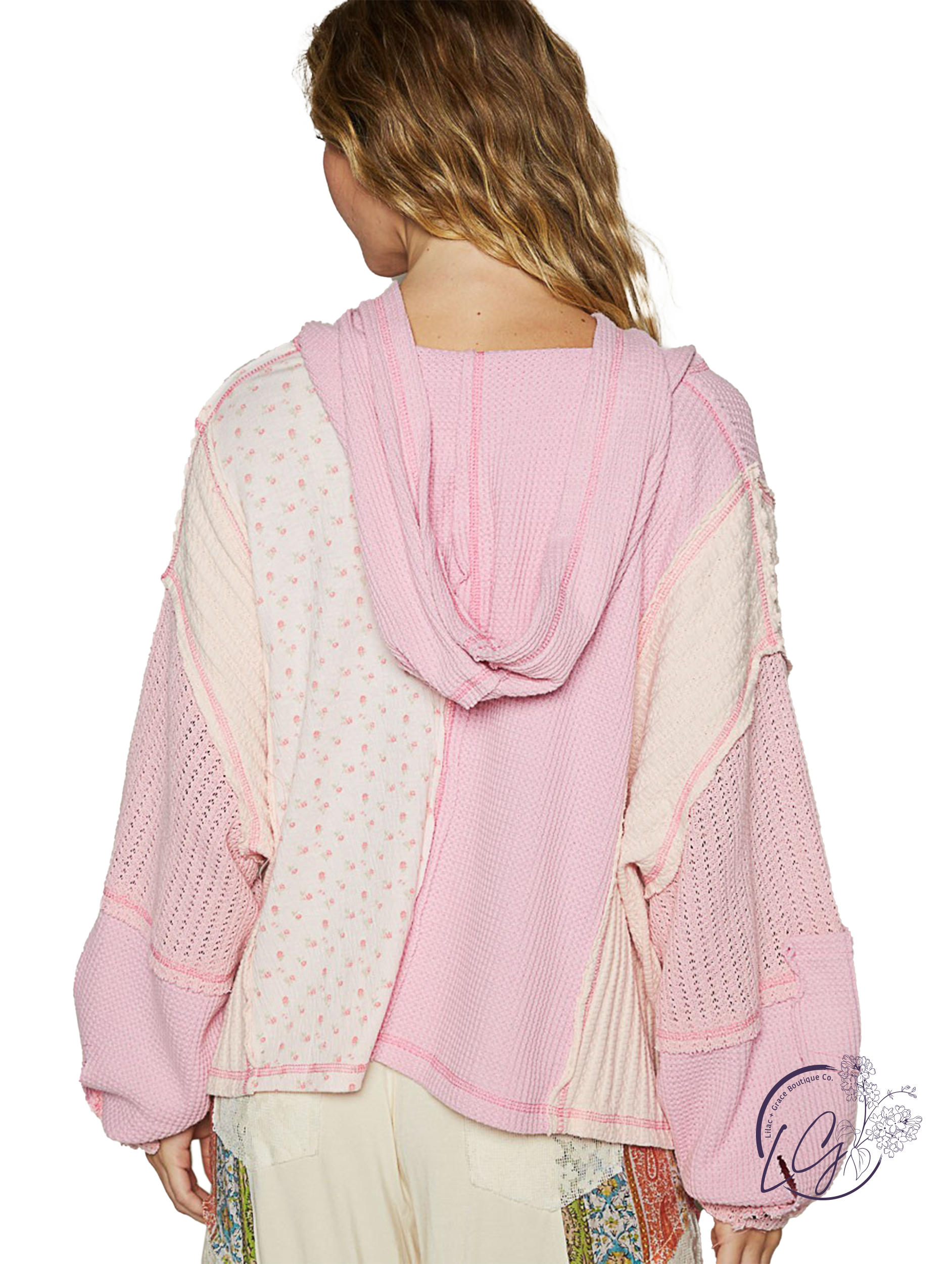 Elevate your style with our By The Fire Knit Top! Featuring a placket hoodie, balloon sleeves, and overlock stitch detailing, this semi-cropped top is designed for both comfort and fashion. Made with a thermal and cut and sew knit mix, it flaunts a unique pointed floral pattern that will surely catch the eye. Add a touch of cozy and chic to your wardrobe today!