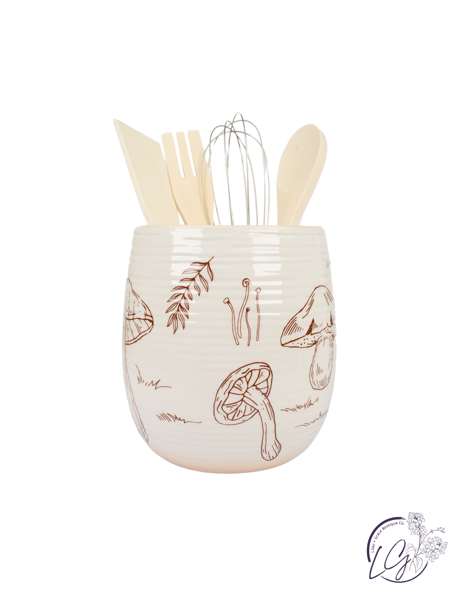 Bring a dash of charm and cheer to your kitchen with this delightful ceramic mushroom utensil holder. Its whimsical design not only brightens your countertop but also keeps your cooking essentials neatly organized and easily accessible. Crafted with care, this sturdy holder is perfect for storing spatulas, spoons, and other utensils, making meal prep more fun and efficient. Whether you're a seasoned chef or a casual cook, this playful mushroom adds personality and practicality to your culinary space.