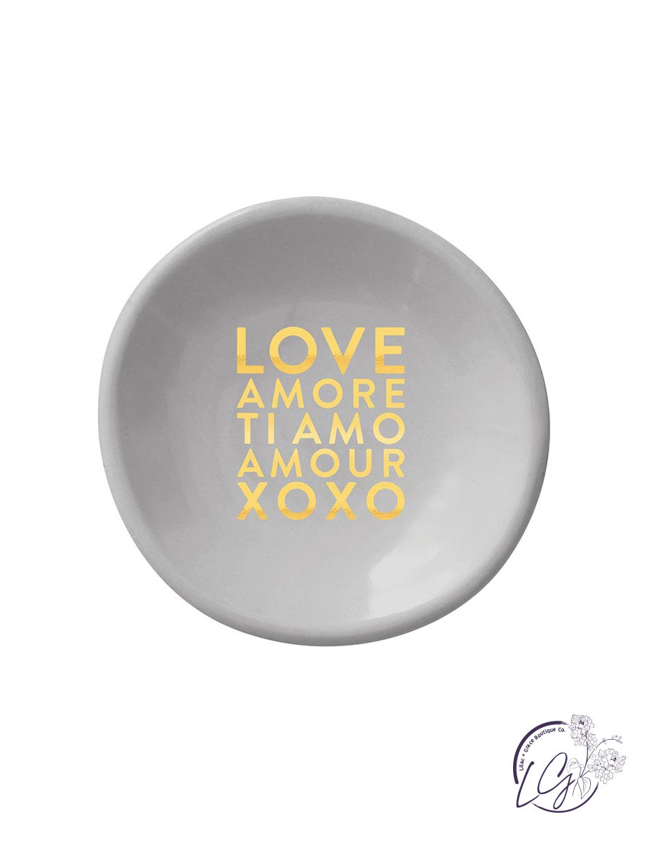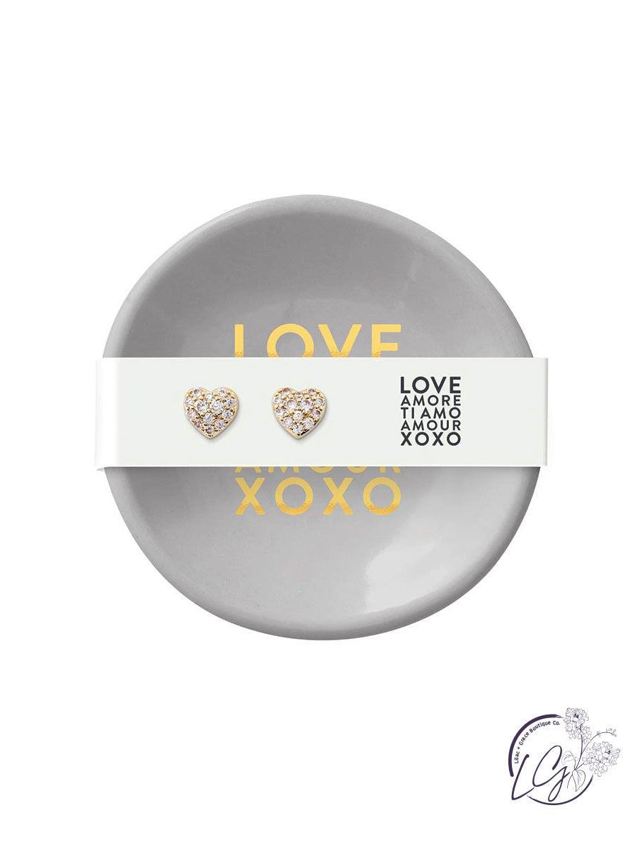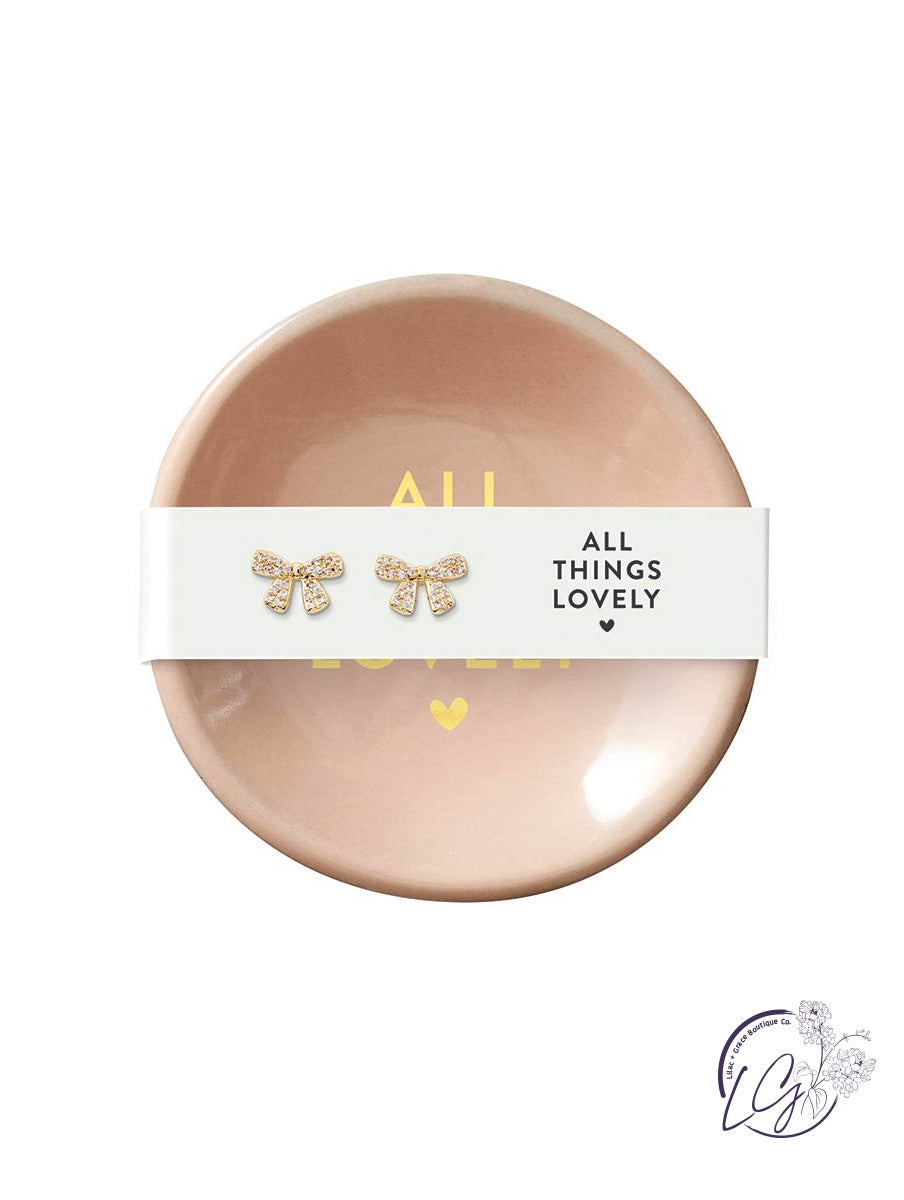 Display your rings and earrings in style with our ring dishes. Handmade ceramic bowls provide a safe place to store your jewelry. Each dish also comes pre-packaged with a set of earrings wrapped around it and a special sentiment to make these the perfect gift.