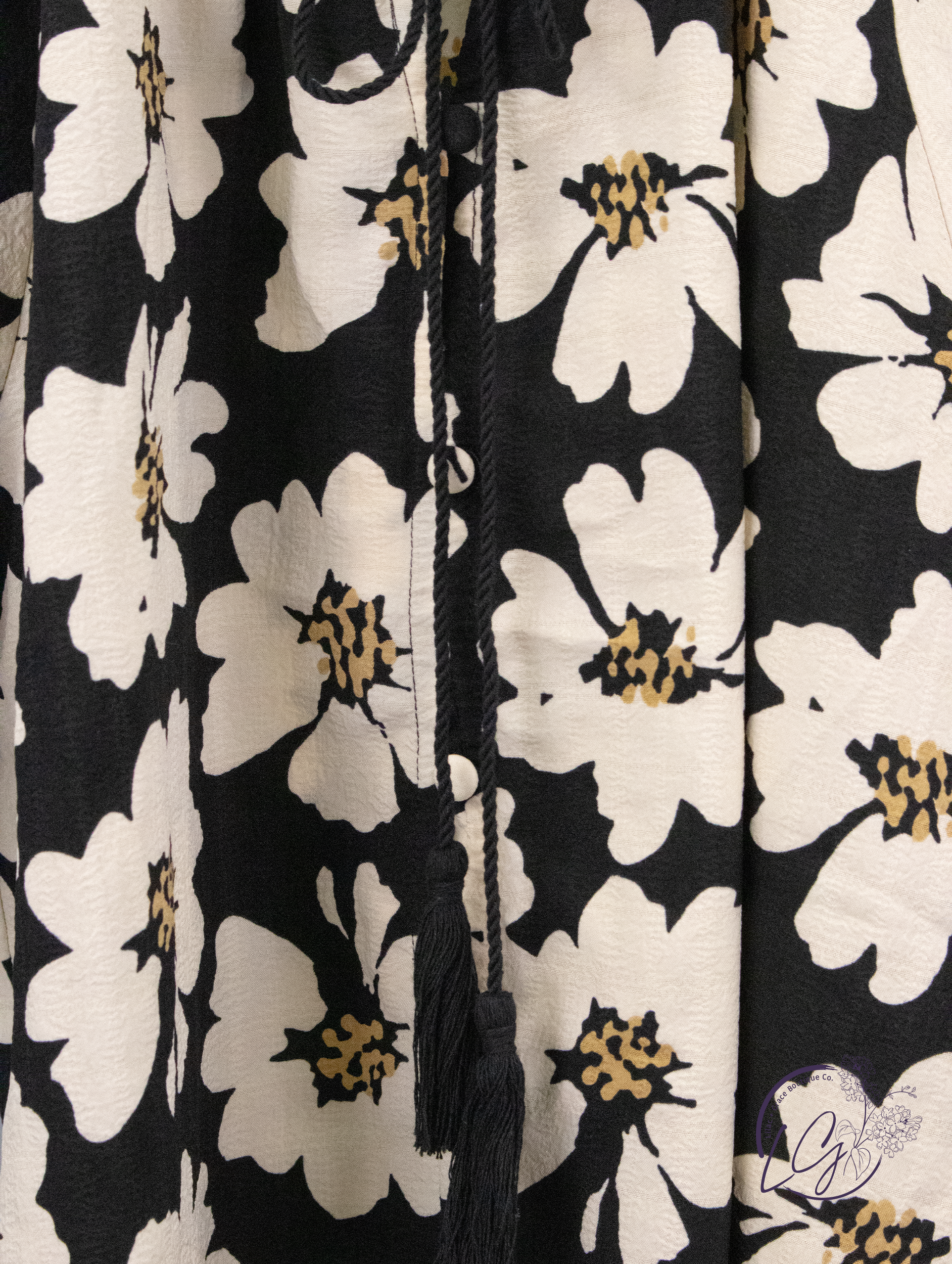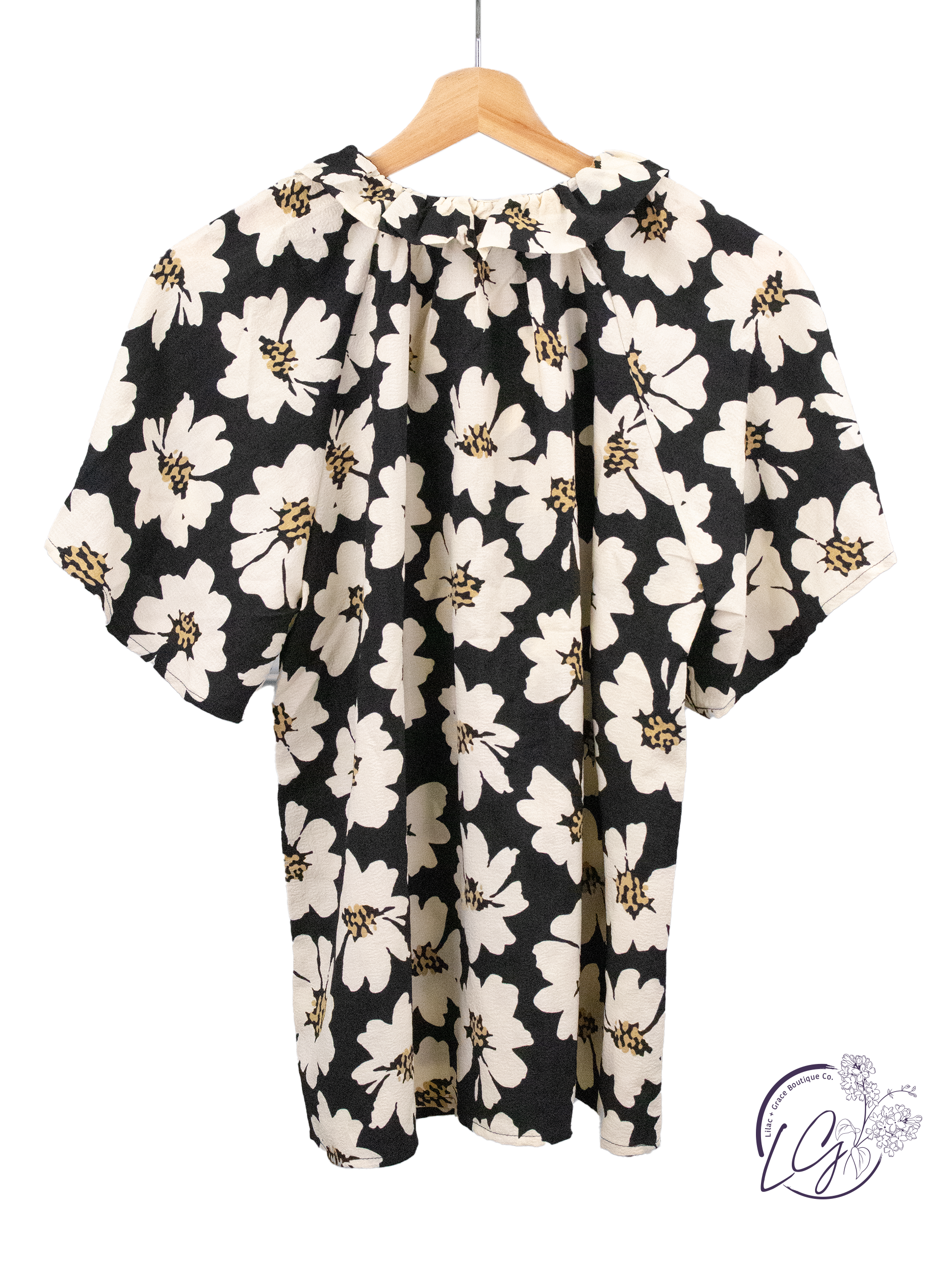 Soft and flowing, this floral print top features a flattering split V-neckline and delicate button-down front for a touch of structure. Flutter short sleeves add movement and a feminine feel, while the lightweight fabric drapes beautifully for all-day comfort. Perfect for sunny outings or casual gatherings, it pairs effortlessly with denim, skirts, or layered under a light jacket for a versatile seasonal look.