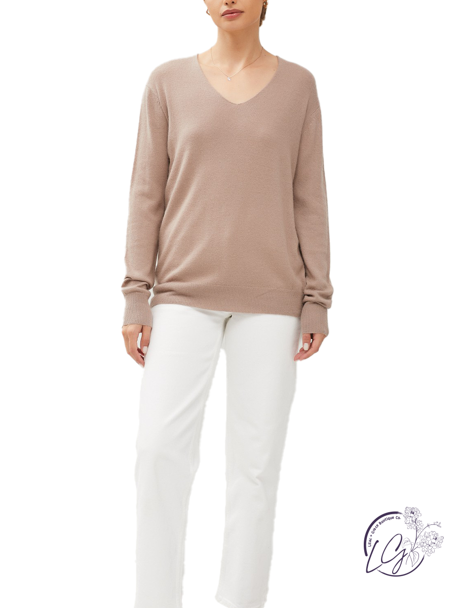 Indulge in the perfect harmony of style and comfort with the Chic Comfort Deep V Sweater, a versatile and cozy knitwear piece designed to elevate your wardrobe. This sweater is a celebration of modern sophistication, featuring a trendy deep V-neckline that adds a touch of allure to its relaxed silhouette.