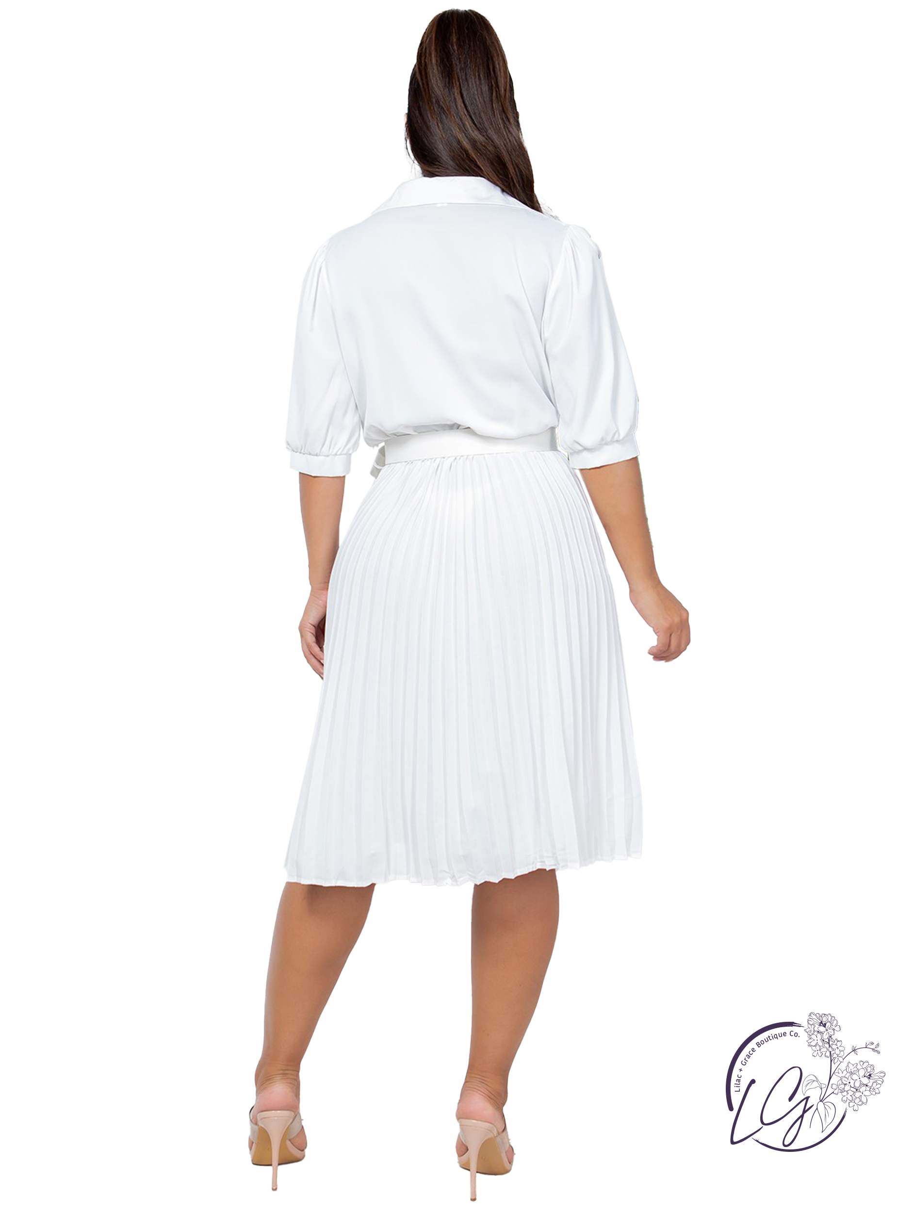 Unleash your daring side with our Chic In Motion Midi Dress! This versatile dress features a flattering V-neck, a stretch waistband for a comfortable fit, and a belted waist to accentuate your figure. The pleated design adds texture and movement, while the 1/2 sleeves and loose fit provide a relaxed yet stylish look. Made with quality fabric, this midi dress is a must-have for any risk-taker's wardrobe.