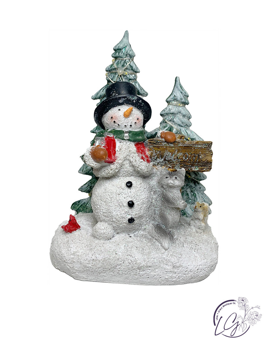 Lights Up! Requires 2 AAA Batteries; Not Included. Resin; 5”W x 7½”H x 3½”D