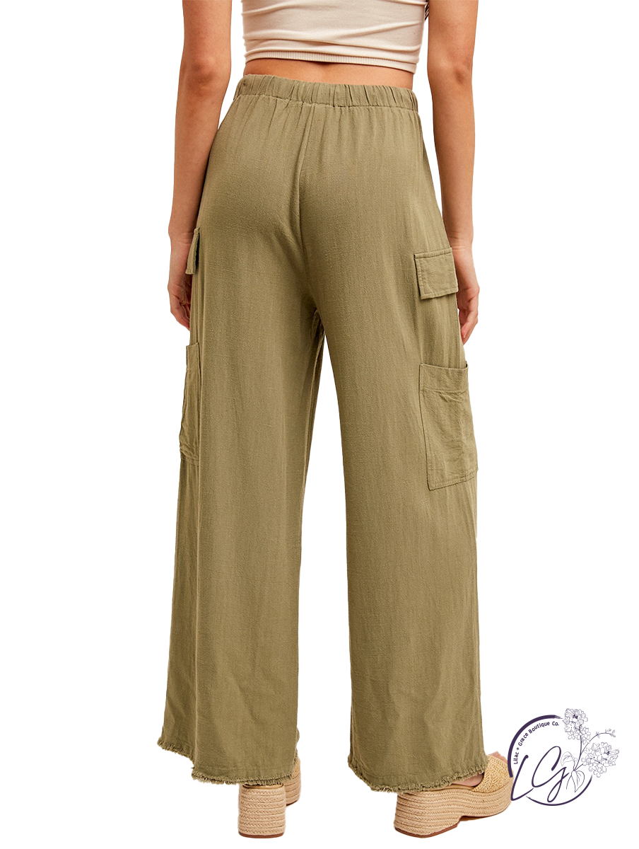 The Cityscape Chic Cargo Trousers are a stylish and comfortable choice for casual wear. Crafted from lightweight linen fabric, they offer breathability and comfort, perfect for warm weather. The elastic waist ensures a comfortable and flexible fit, while the fringe hem adds a touch of bohemian flair. With their cargo-style design, these pants feature ample pockets for added convenience and functionality.