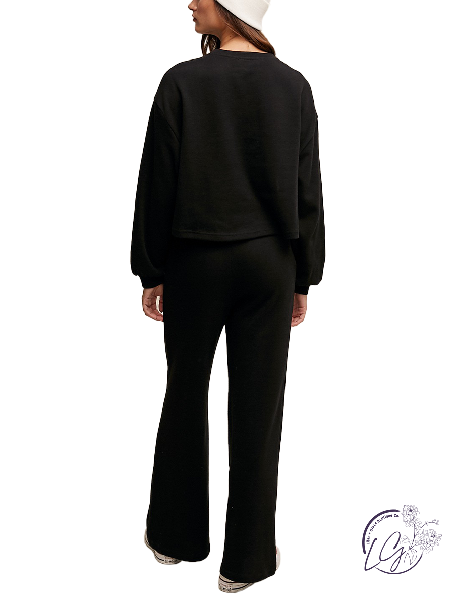 Get your knit on with this lounge Wide Leg Pant Wide leg pants made of soft cotton polyester. The elastic waist and functional pockets make this set both comfortable and convenient for lounging. And don't worry about fit, our model is 5'10" and wears a size Small, but you can't put a measurement on feeling good!