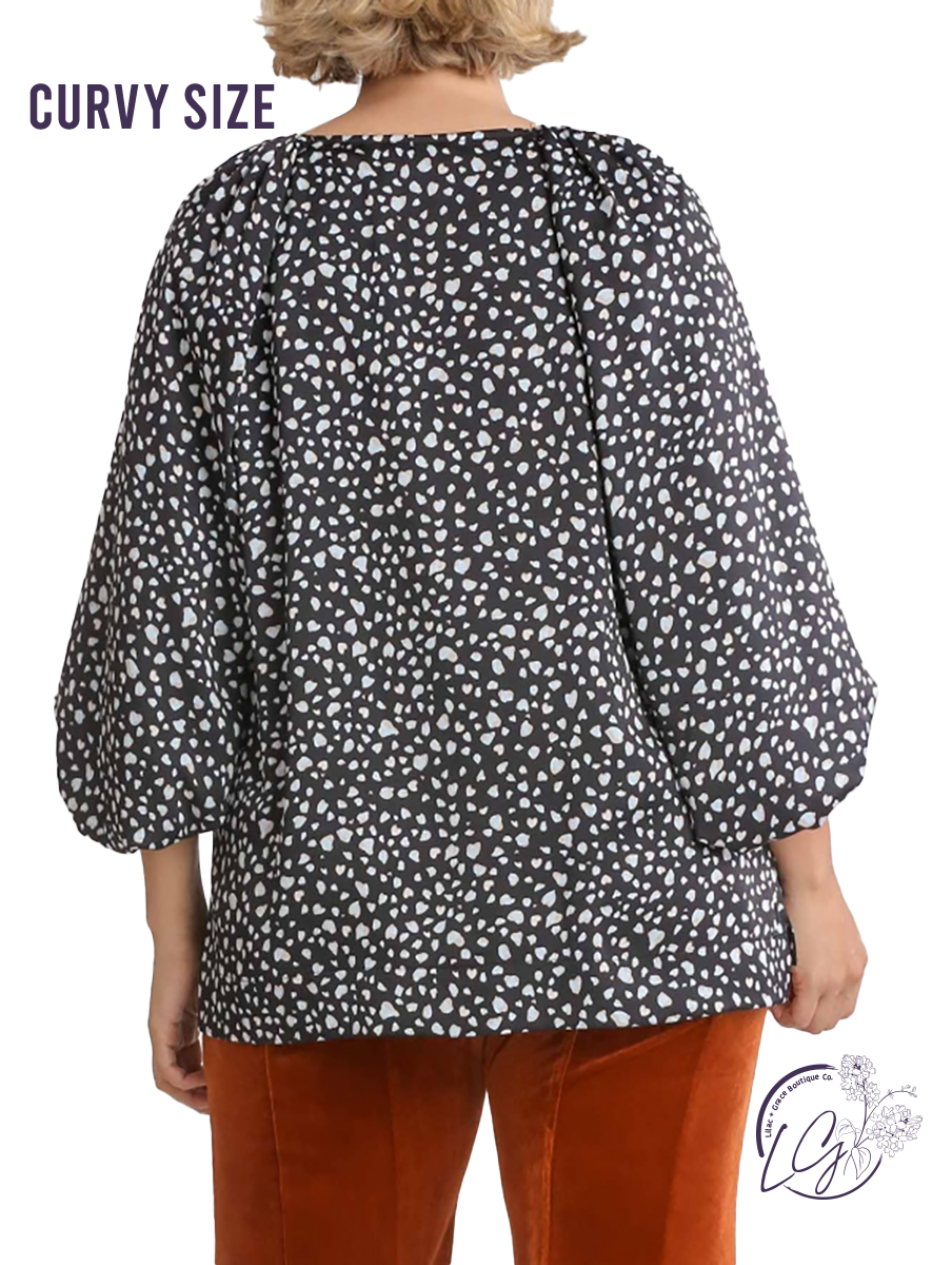 Curvy Animal Print Round Neck Balloon Sleeve Top with Side Splits