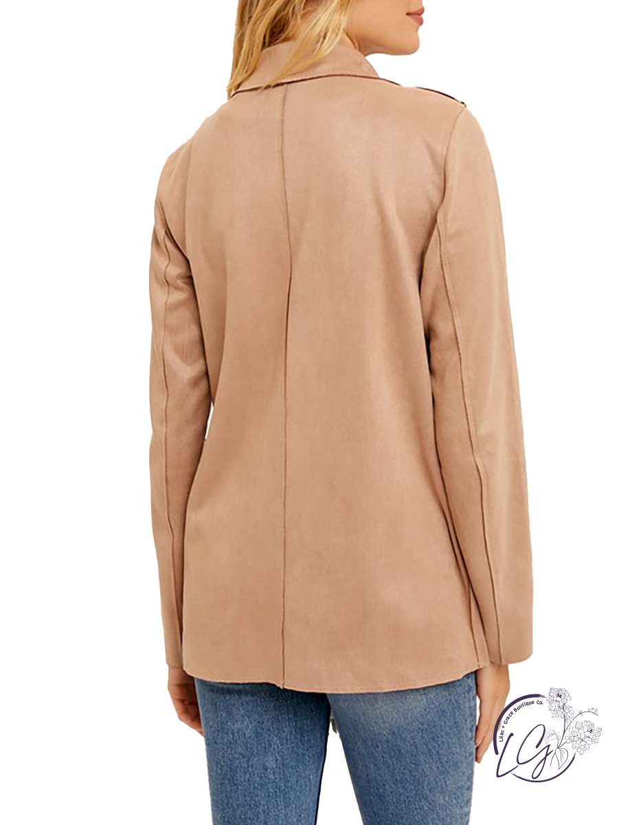 Microsuede Raw Edge Detailed Relaxed Fit Blazer