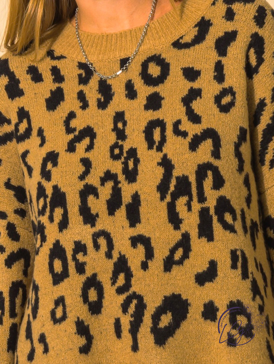 COZY ANIMAL PRINT HIGH-LOW PULLOVER SWEATER