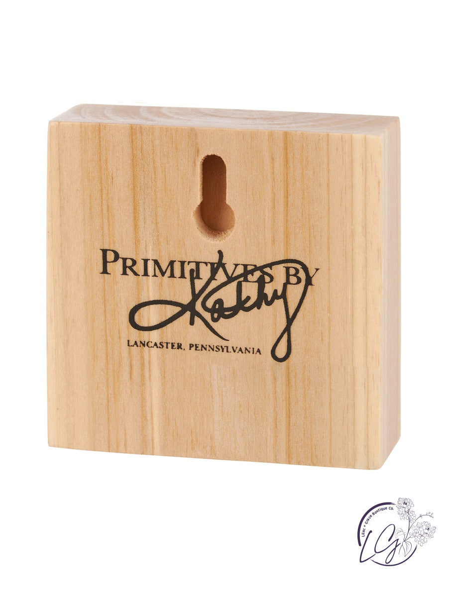 A groovy wooden block sign displaying a retro-style "Crazy Love" sentiment. Sides feature smooth wood for added interest. Our Crazy Love block sign is easy to hang via predrilled keyhole slot or can free-stand alone.