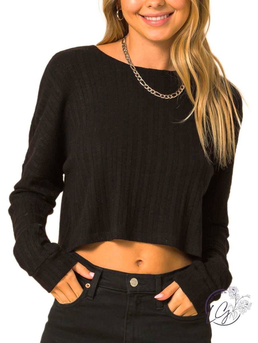 Crew neck drop shoulder crop top.