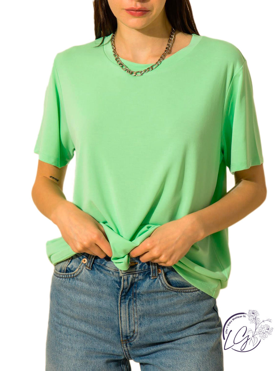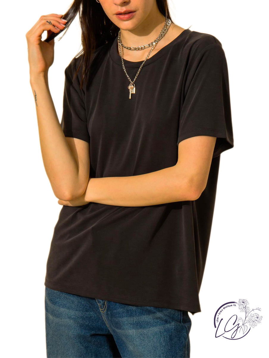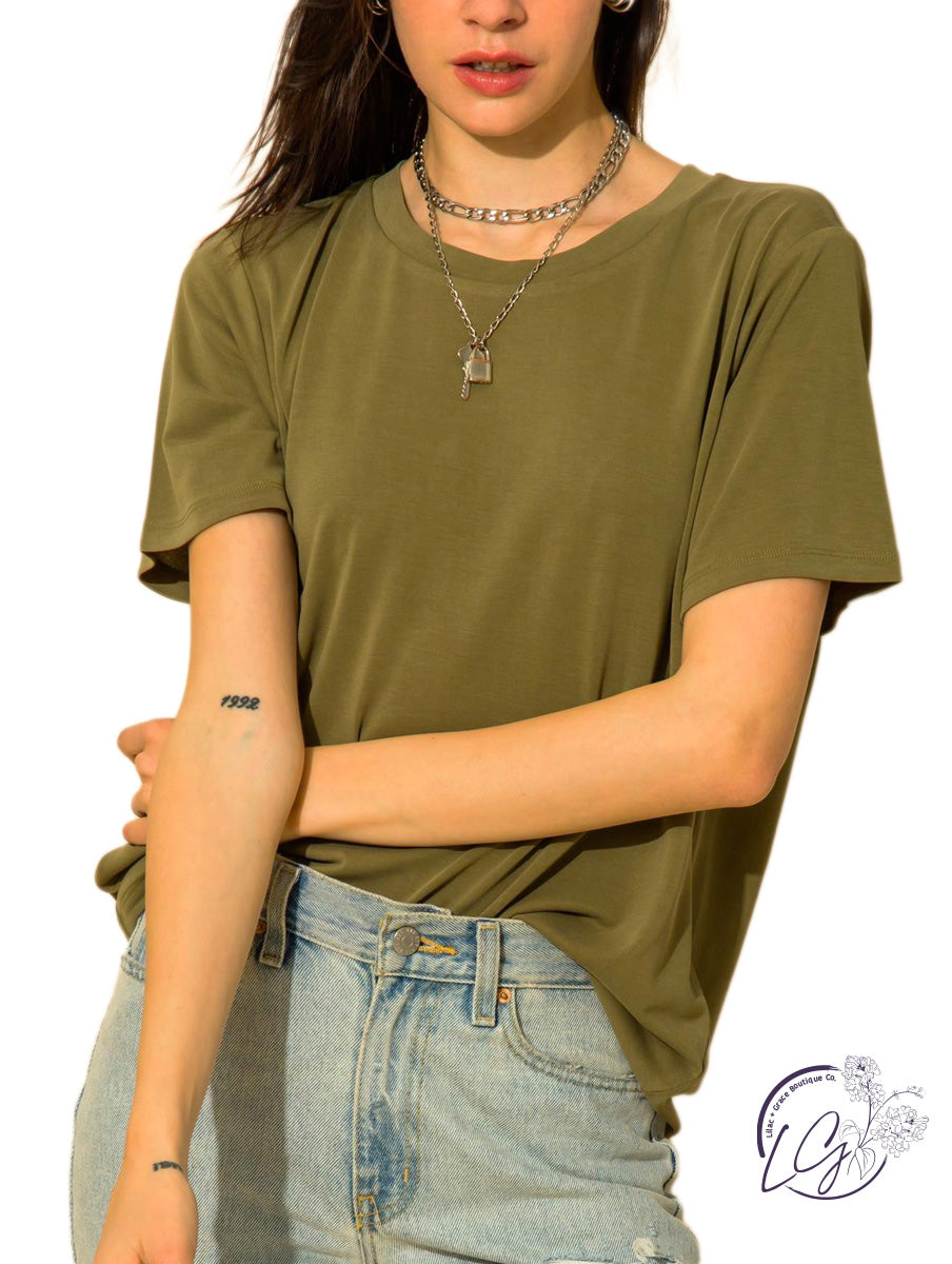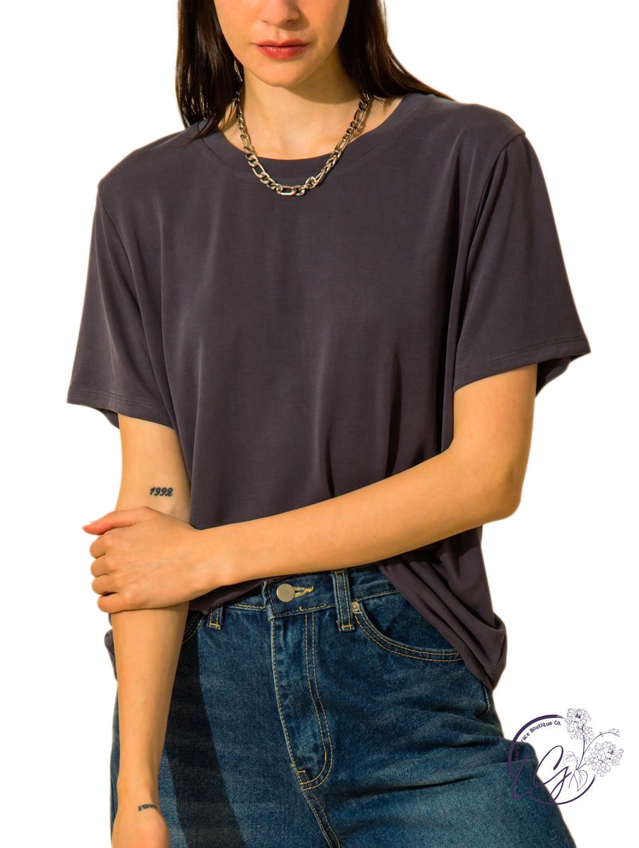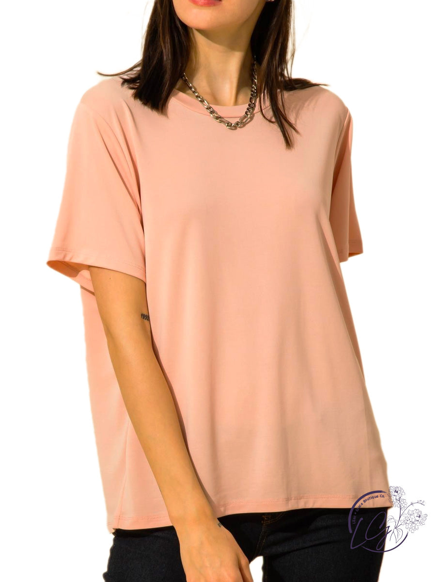Perfect for your basics wardrobe, this t-shirt has a simple round neckline, large stylish half sleeves and breathable fabric. You'll love how comfortable this minimalistic cotton t-shirt is!