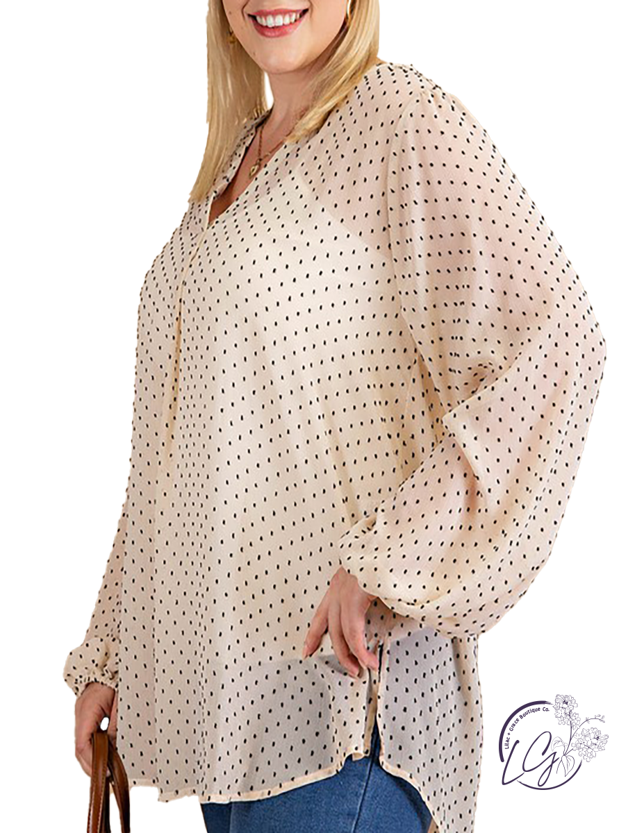 CURVY Animal Print Puff Sleeve Chiffon Blouse