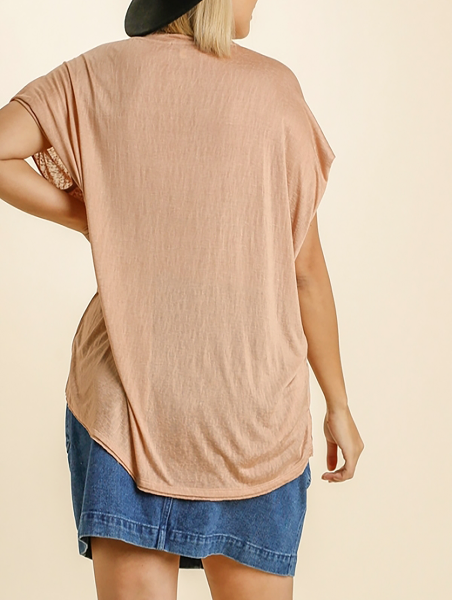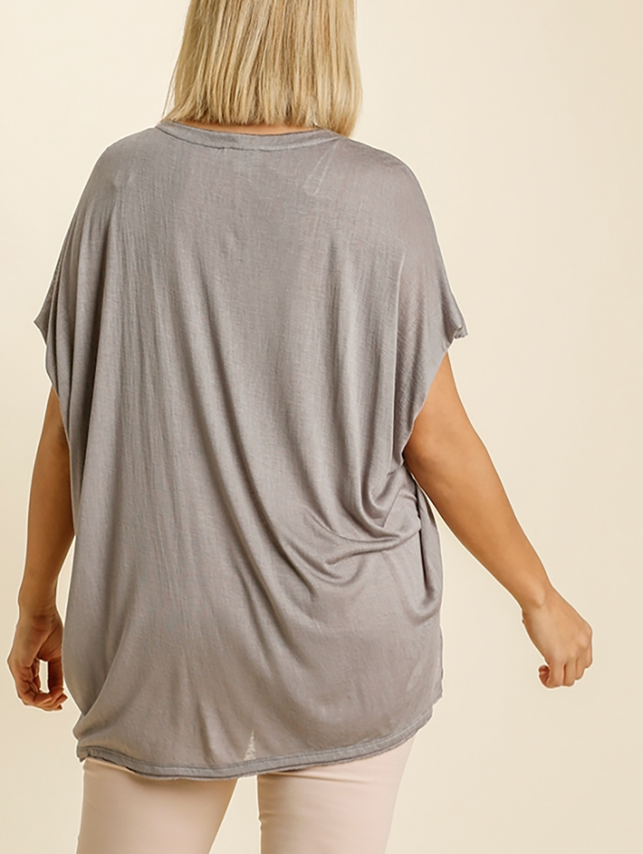 Short Sheer Dolman Sleeve Scoop Neck Top with Side Slit