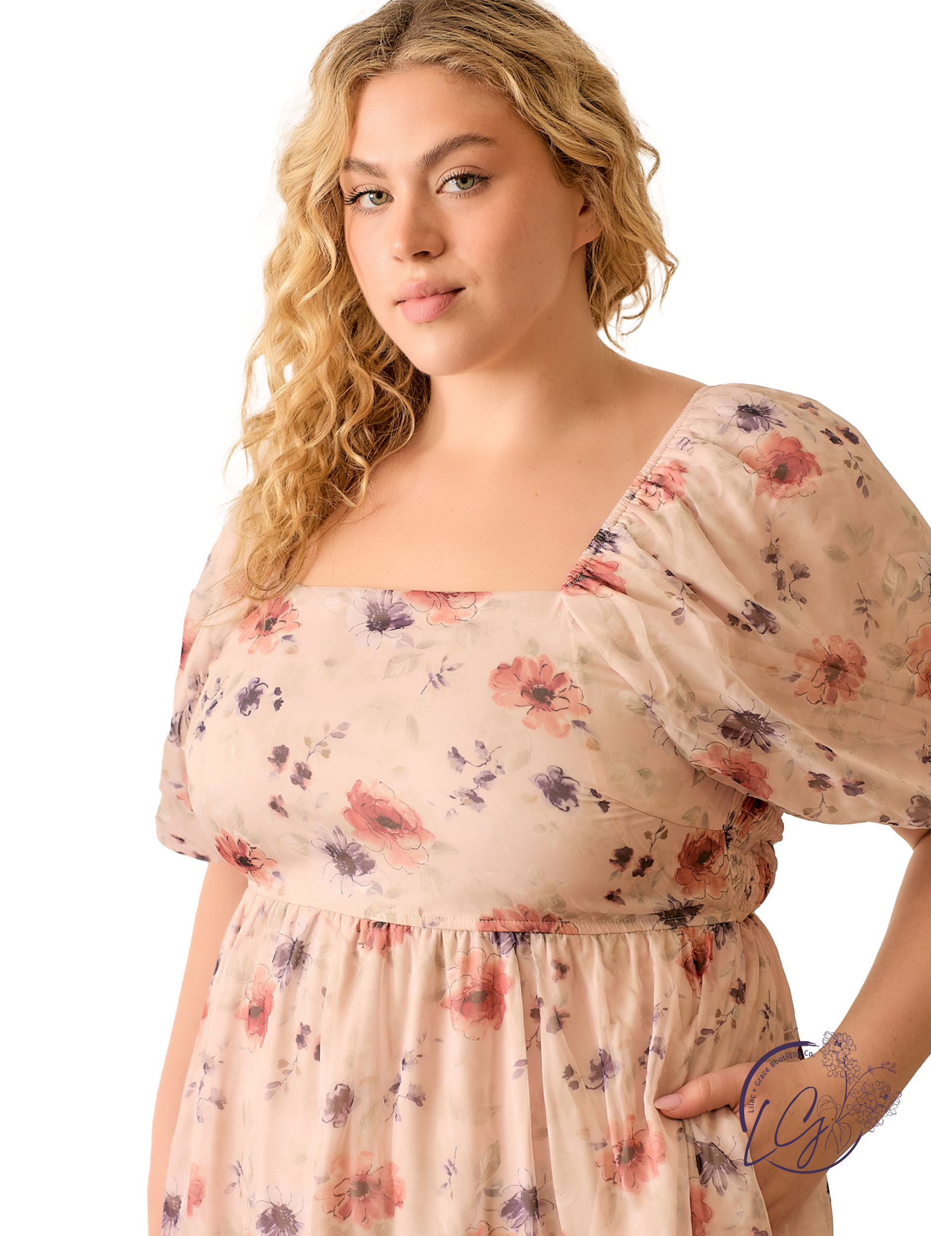This floral organza dress features a lightweight, flowy silhouette that moves with ease. The sheer overlay adds dimension and softness, while the floral pattern brings a romantic touch. Perfect for special occasions or daytime events—just add heels or sandals to complete the look.