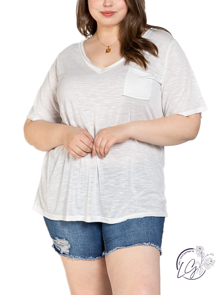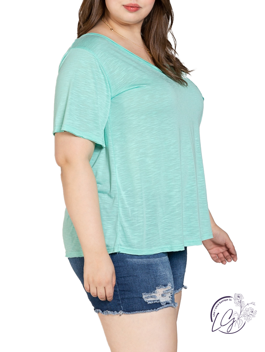 A top you'll probably need to have since it can be worn throughout the year. Our "Basic And Soft" made out of slub fabrication however it's just not the usual slub fabric we're talking about because POL fabrics are known to be extremely soft. Designed in a relaxed fit with low V neckline, short sleeve, pocket on the side front, and finished with clean hem.
