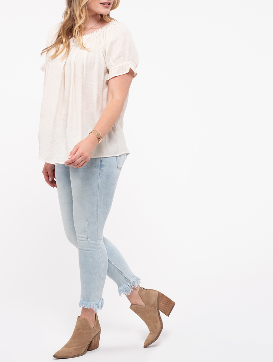 Elevate your style with our 'Curvy Inside Scoop Blouse.' Designed to flatter and inspire confidence, this chic blouse boasts a fashionable scoop neckline that's both trendy and timeless. With a curvy fit tailored to enhance your curves, it's the perfect addition to your wardrobe for any occasion, from casual outings to special events.