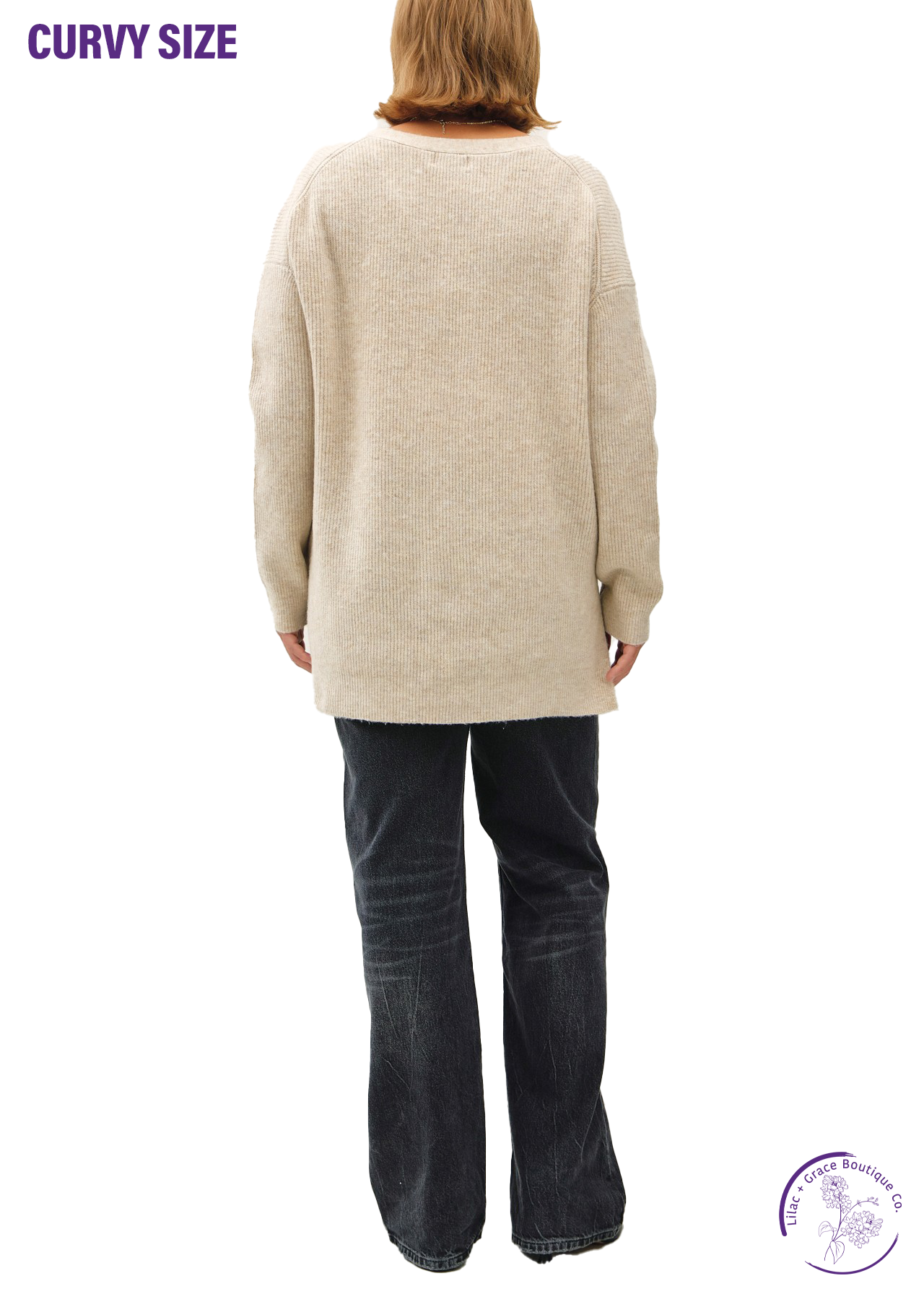 Elevate your style game with our Curvy Button Down Cardigan! This plus size sweater features a flattering V-neckline, long sleeves, and a relaxed fit for ultimate comfort. The ribbed texture and side split hem add trendy details, while the oversized silhouette and below hip length are perfect for a casual, yet chic look. Transition from fall to winter effortlessly with this versatile cardigan.