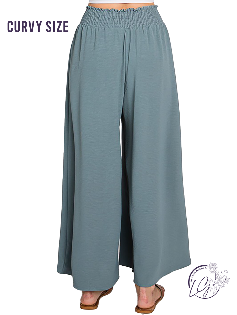 Curvy Wide leg maxi pants with smocking waist and front self tie