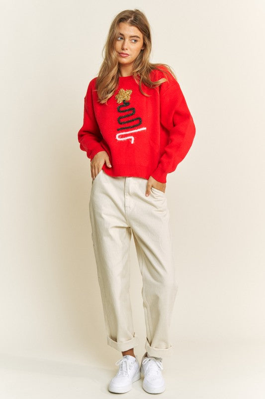 Get ready to sleigh the holiday season in our Curvy Tinsel & Twirls Knit! This charming sweater wraps you in festive fun with its playful, curvy tree design, perfect for spreading cheer at any gathering. Cozy and whimsical, it’s your go-to for comfort and Christmas spirit all season long.