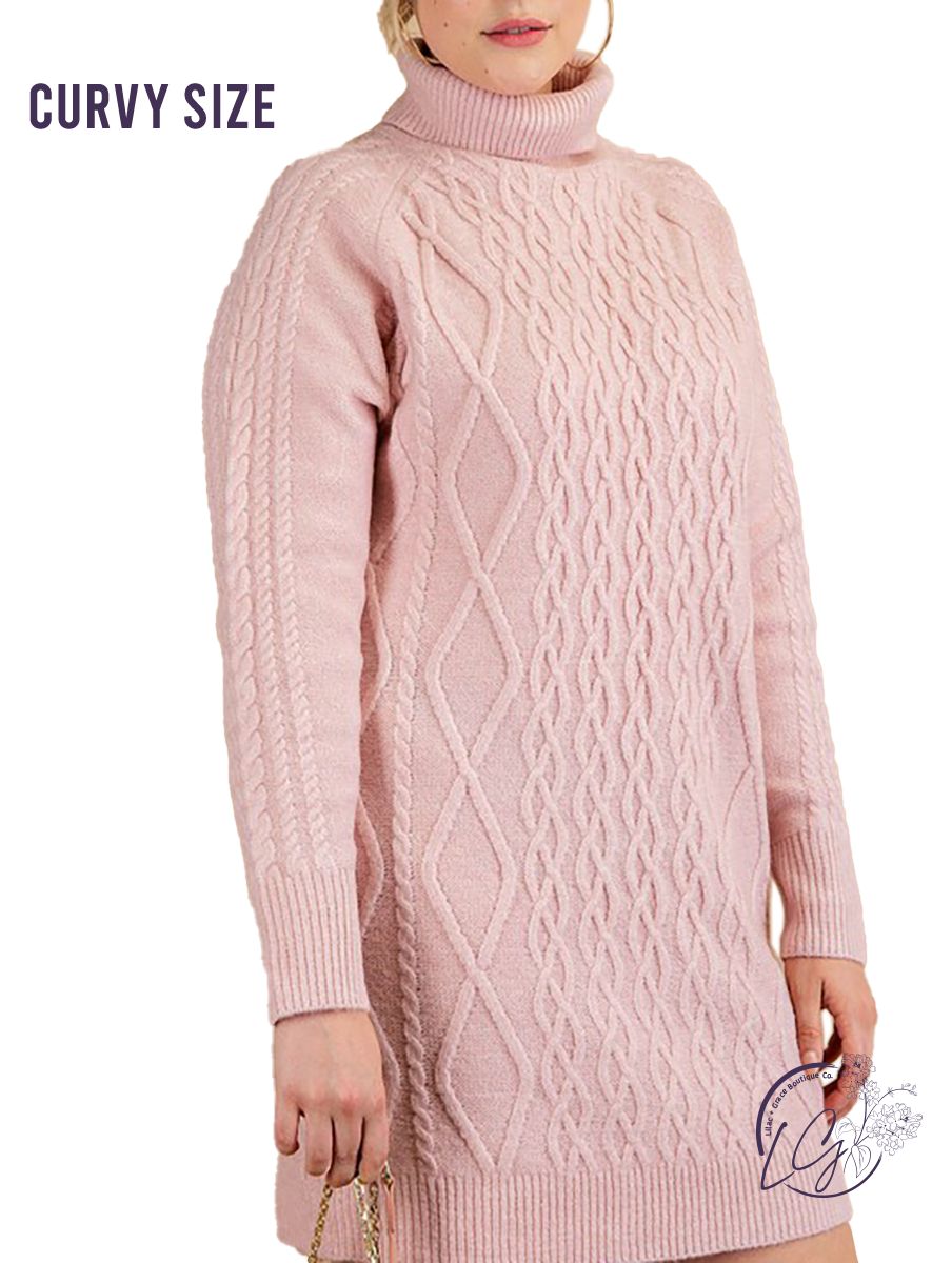 Curvy Soft Cable Knit Bubble Sleeve Sweater