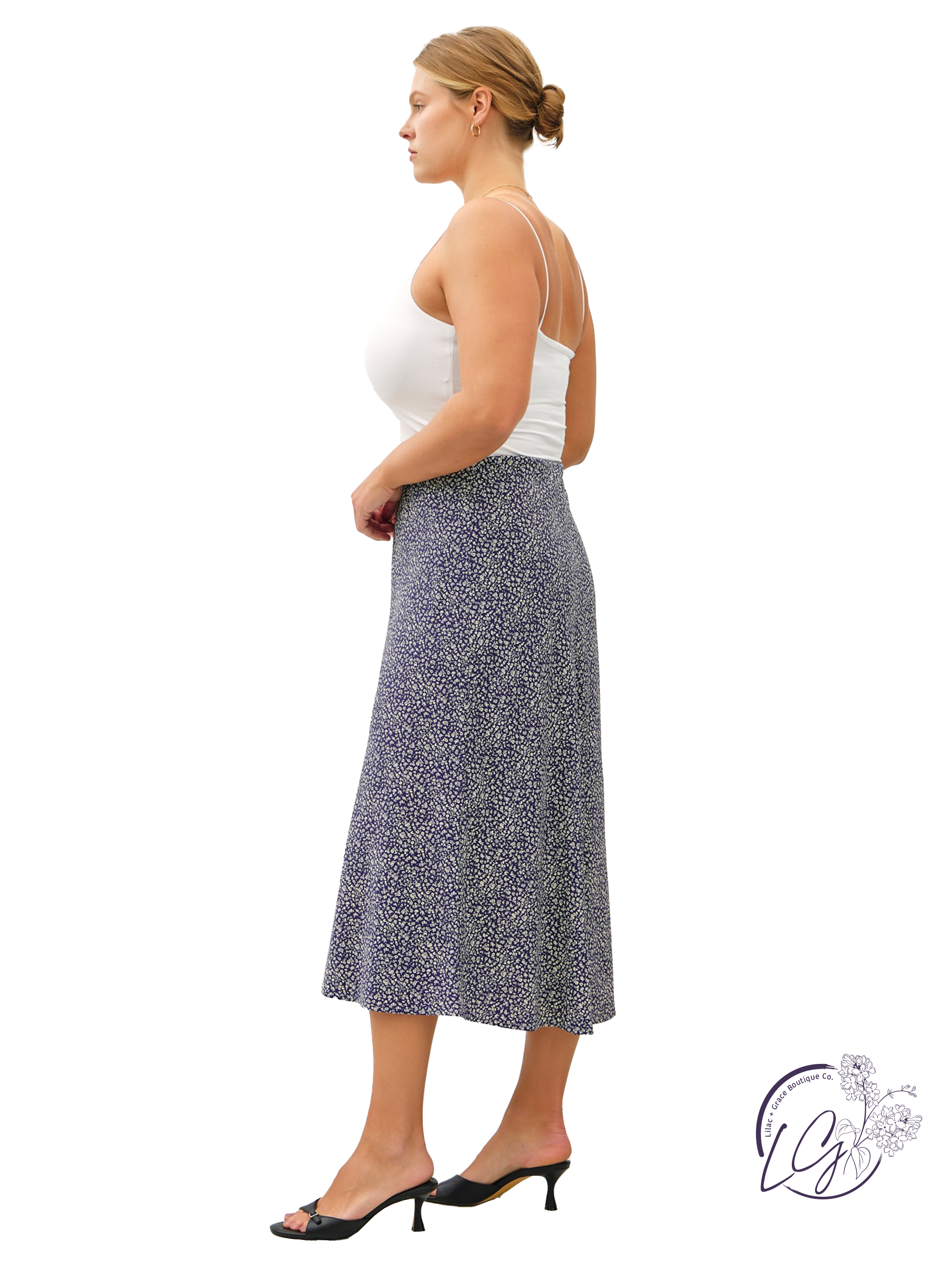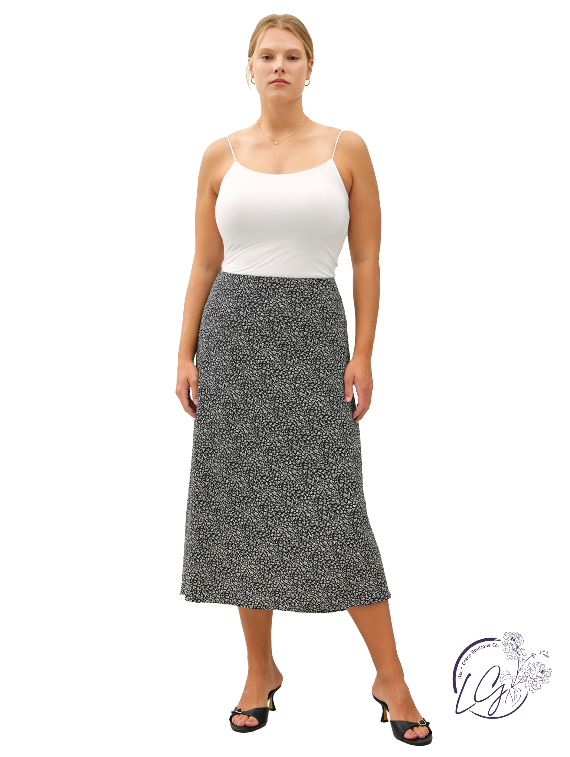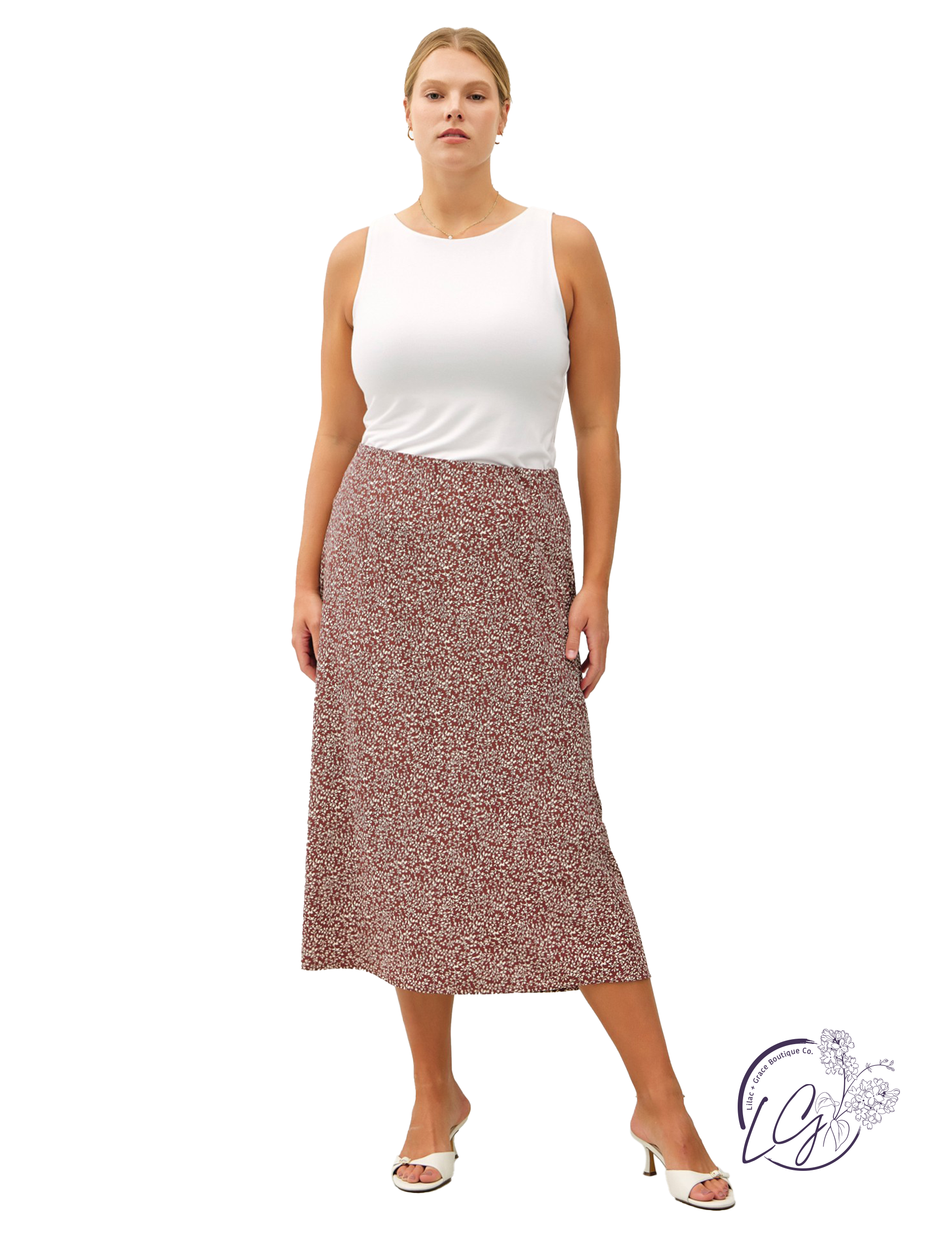 Effortlessly embody retro-inspired femininity with our Curvy Efflorescing Comfort Midi Skirt. The beautiful floral print and elastic waistband provide a comfortable and stylish look that hits below the knee. Made with lightweight fabric and delicate banding, this midi skirt will become a staple in your wardrobe.