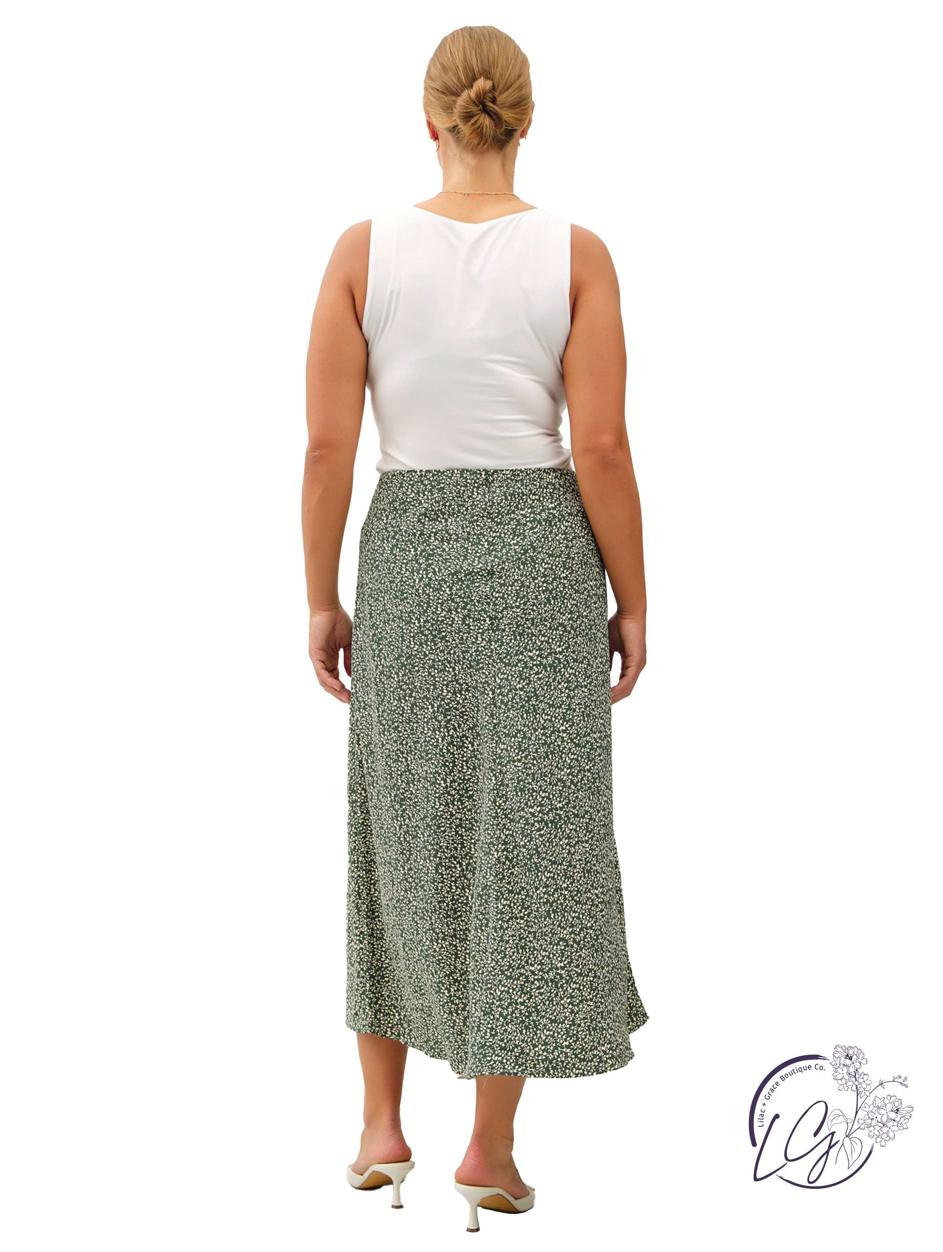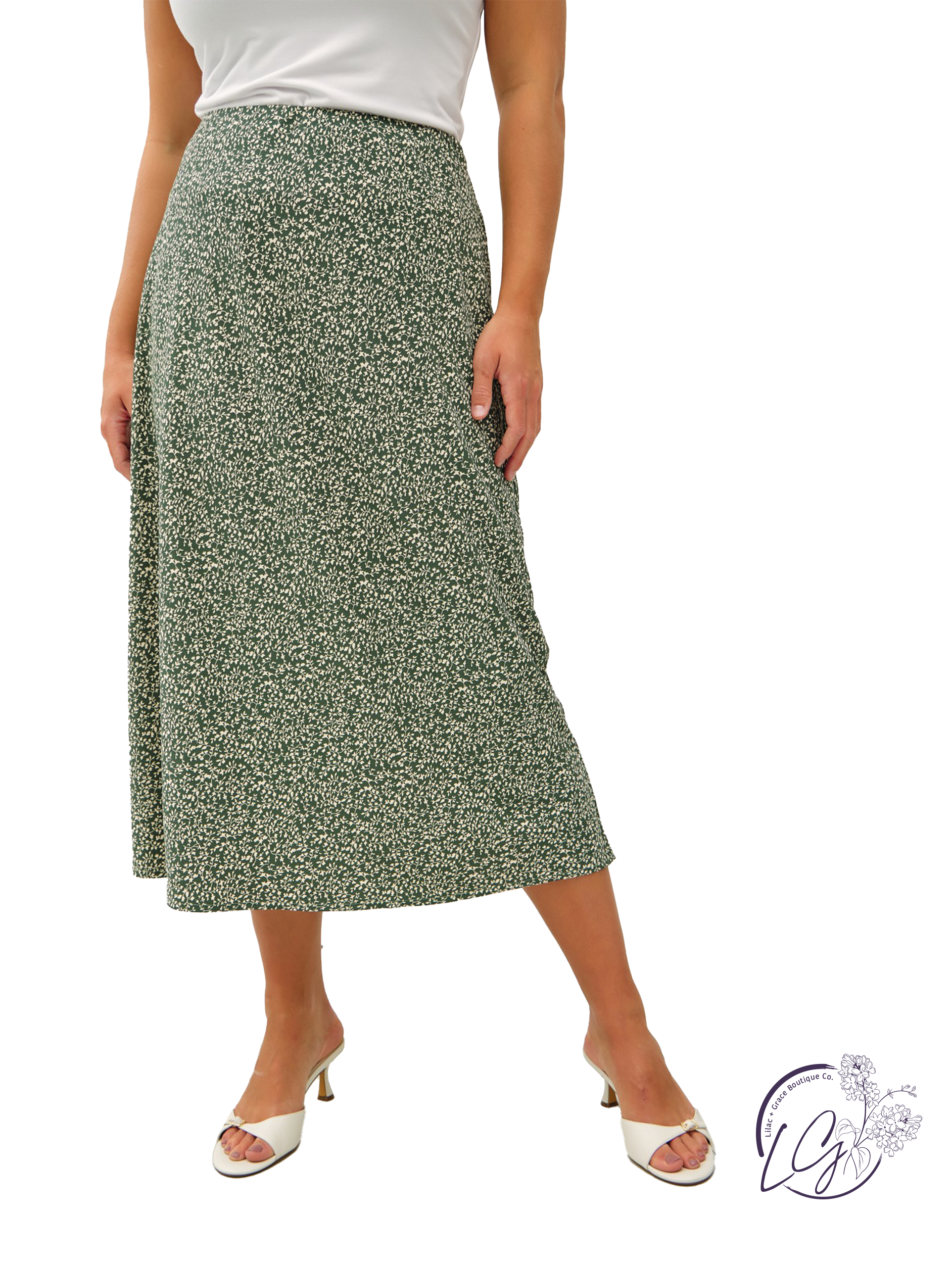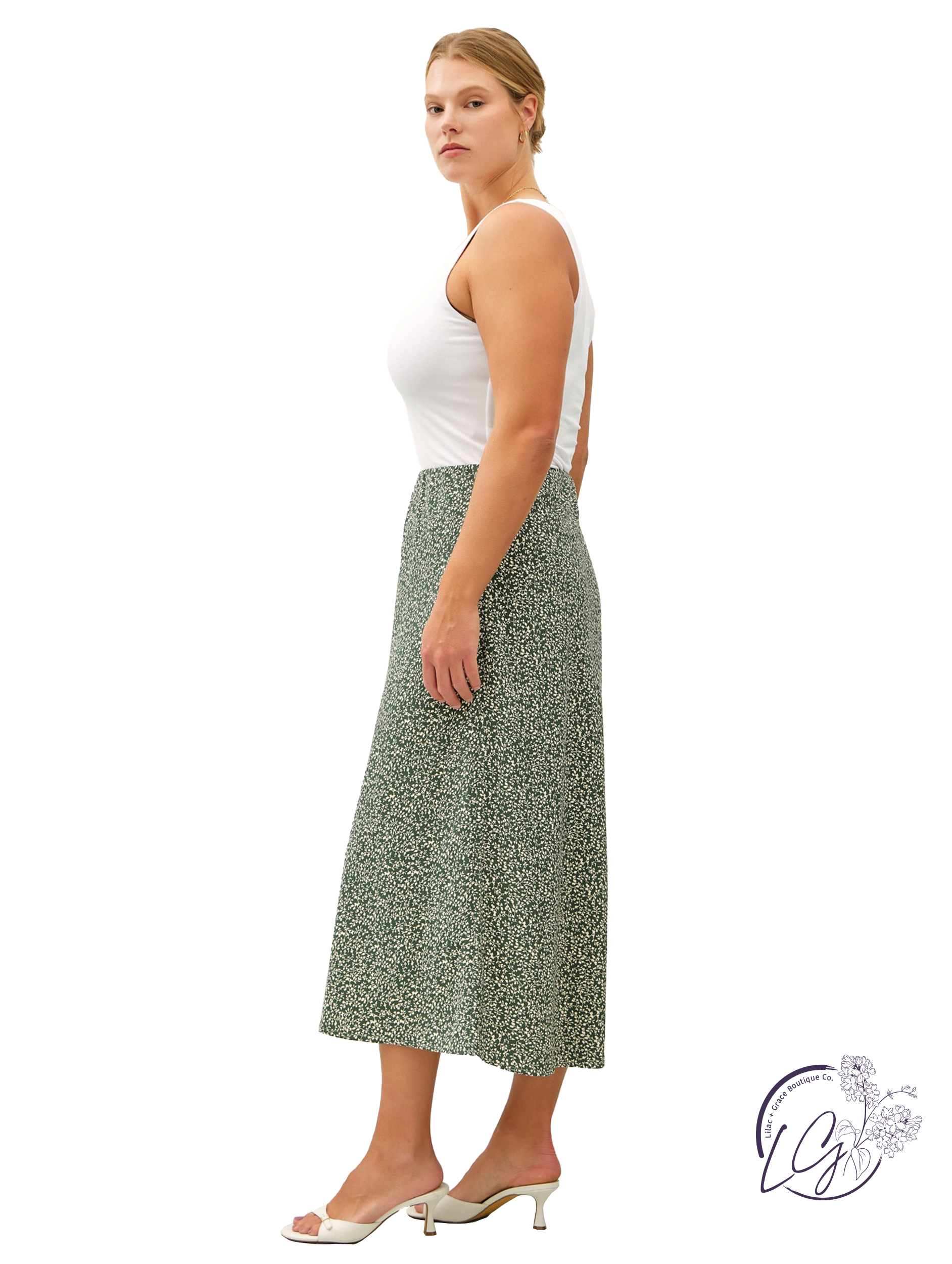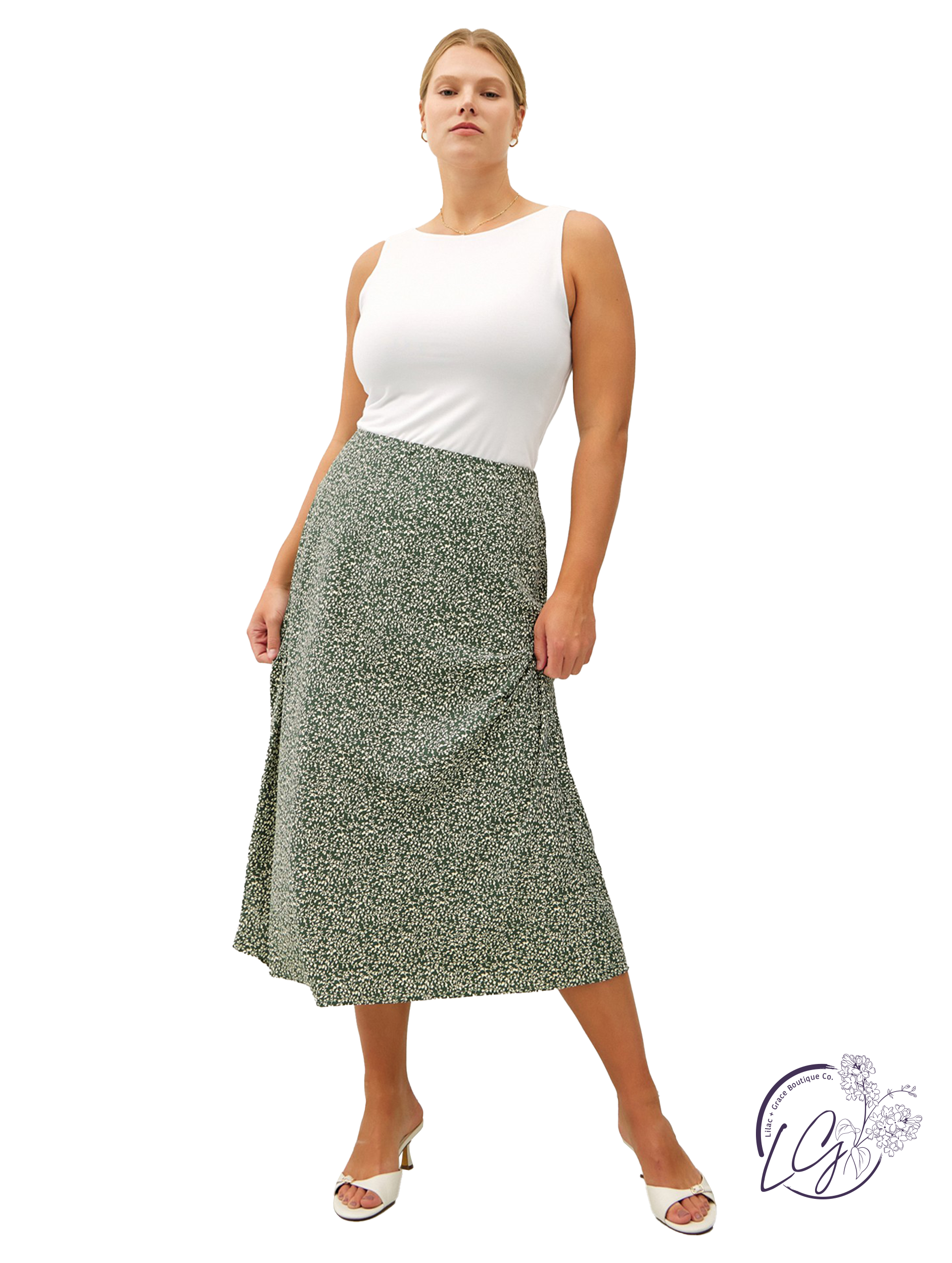 Effortlessly embody retro-inspired femininity with our Curvy Efflorescing Comfort Midi Skirt. The beautiful floral print and elastic waistband provide a comfortable and stylish look that hits below the knee. Made with lightweight fabric and delicate banding, this midi skirt will become a staple in your wardrobe.