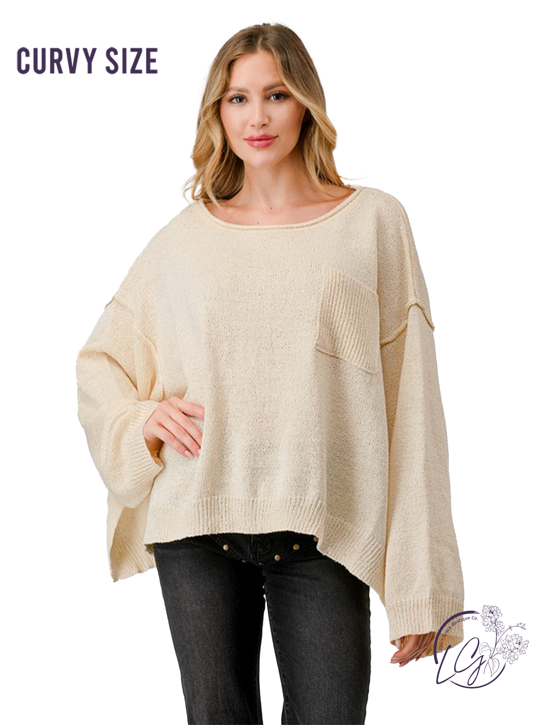 Laid-back and effortlessly cozy, this oversized knit pullover features a slouchy fit, drop shoulders, and a single chest pocket for a hint of texture. The soft neutral tone and ribbed trim make it a versatile piece you'll reach for again and again, whether you're lounging at home or layering it over denim for an easy daytime look.