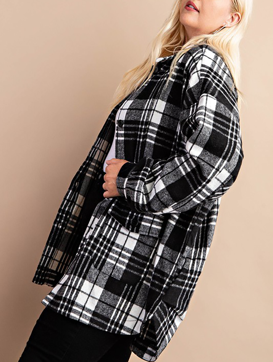 Curvy Oversized Button Down Plaid Shacket