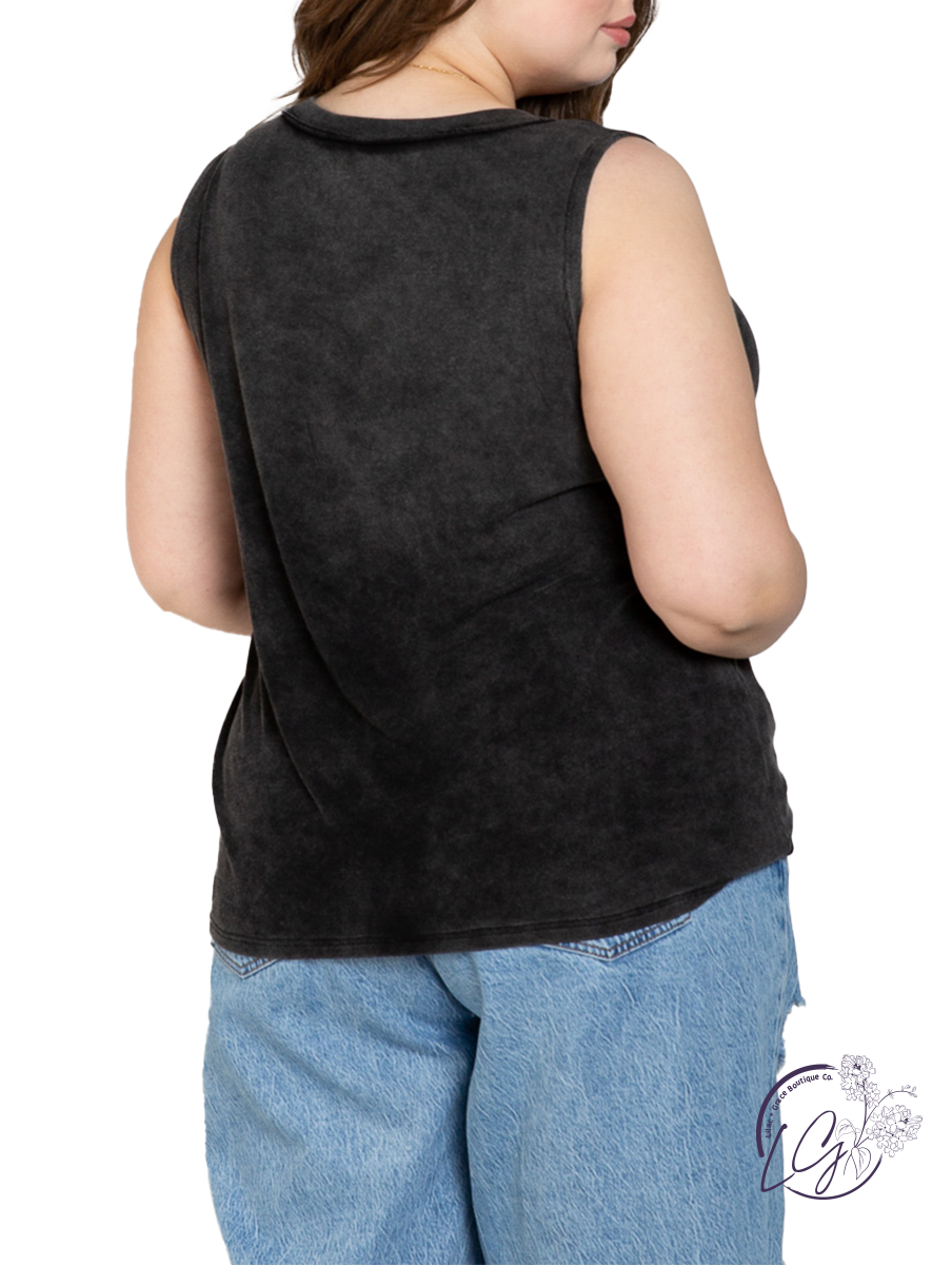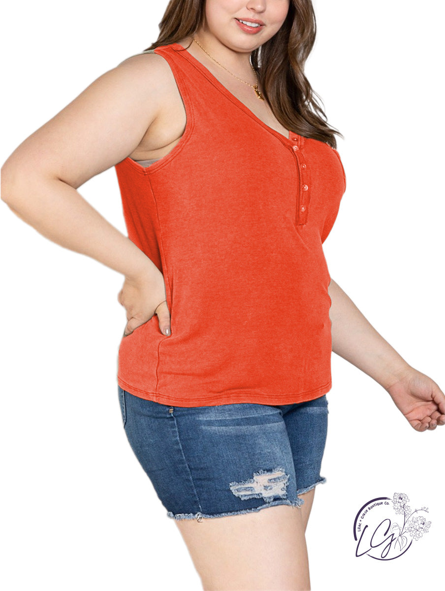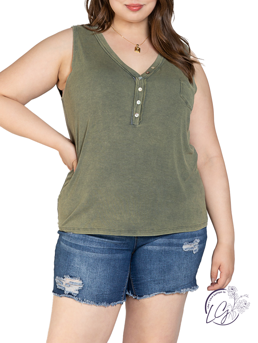 Designed in sleeveless with V-neckline, button closure, neckband and placket with raw edge, chest pocket.