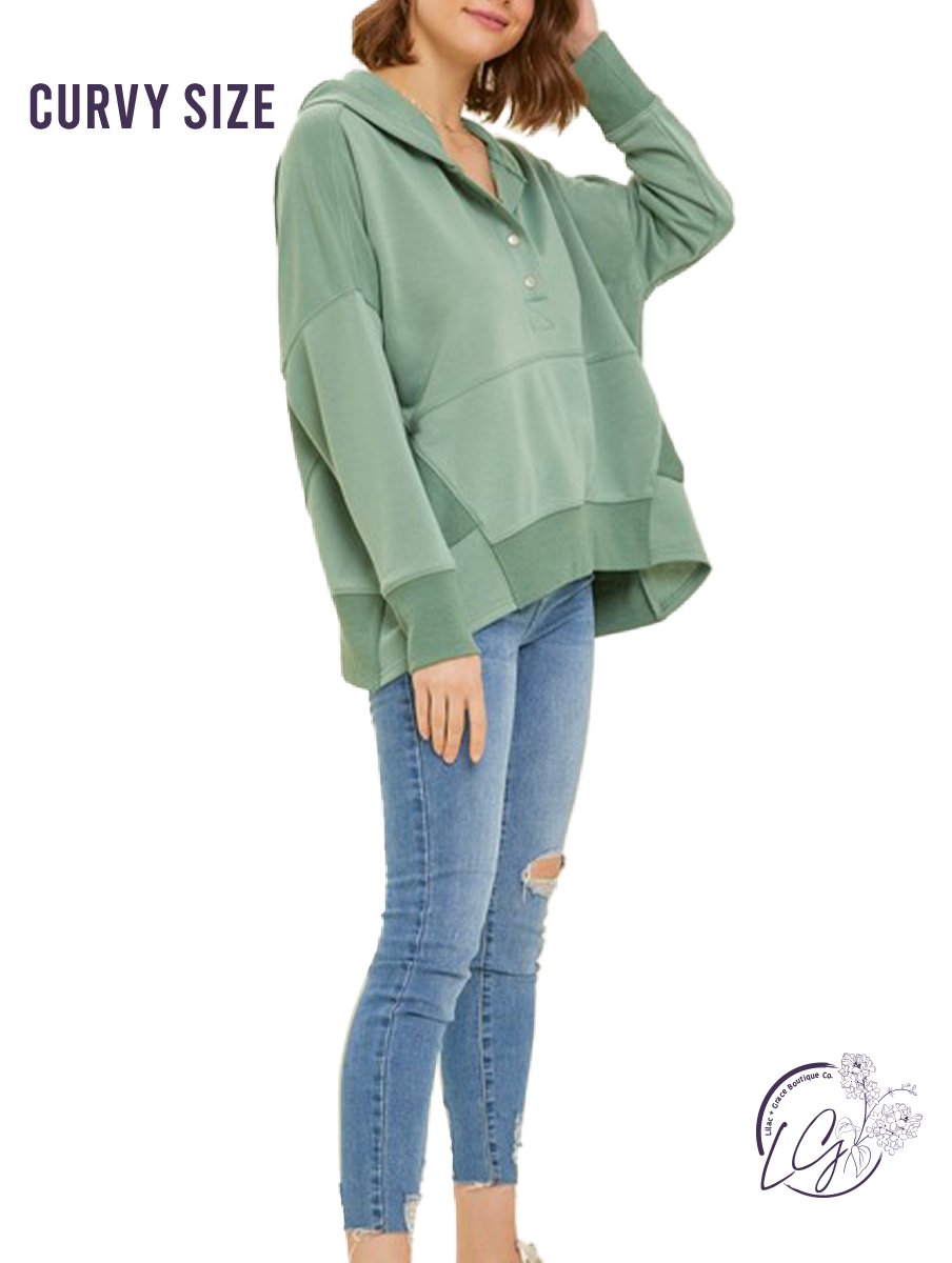 Introducing the "Curvy Gentle Drift Hooded Sweater," a cocoon of comfort and style that takes loungewear to new heights. This oversized French terry pullover is designed for those who appreciate the fusion of relaxation and modern aesthetics.
