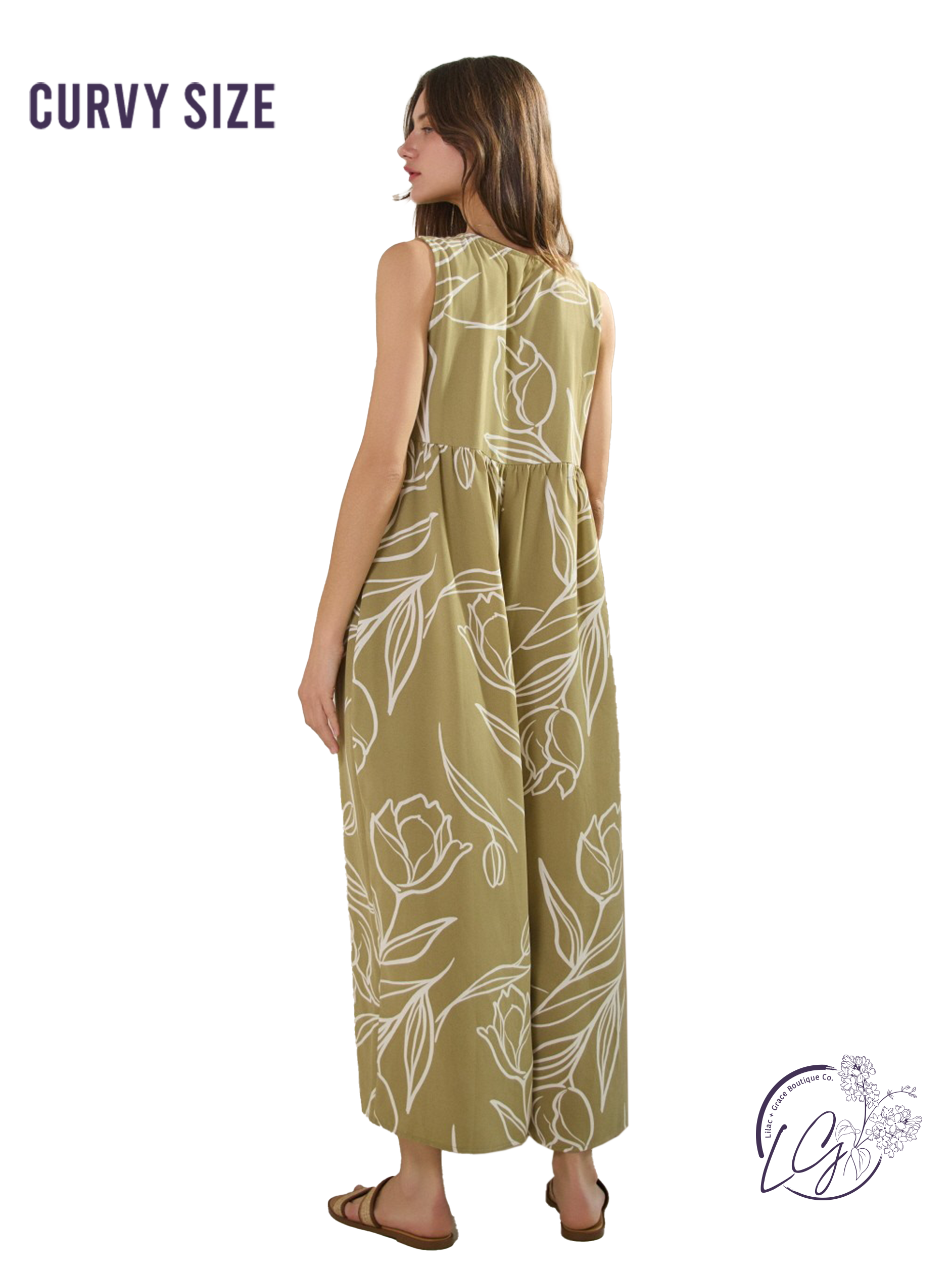 Get ready to take on the world in our Golden Days Ahead Jumpsuit! This sleeveless cropped jumpsuit features a bold floral line drawing print and front button detailing, perfect for those who love to take risks and live life to the fullest. With this jumpsuit, every day will feel like an adventure!